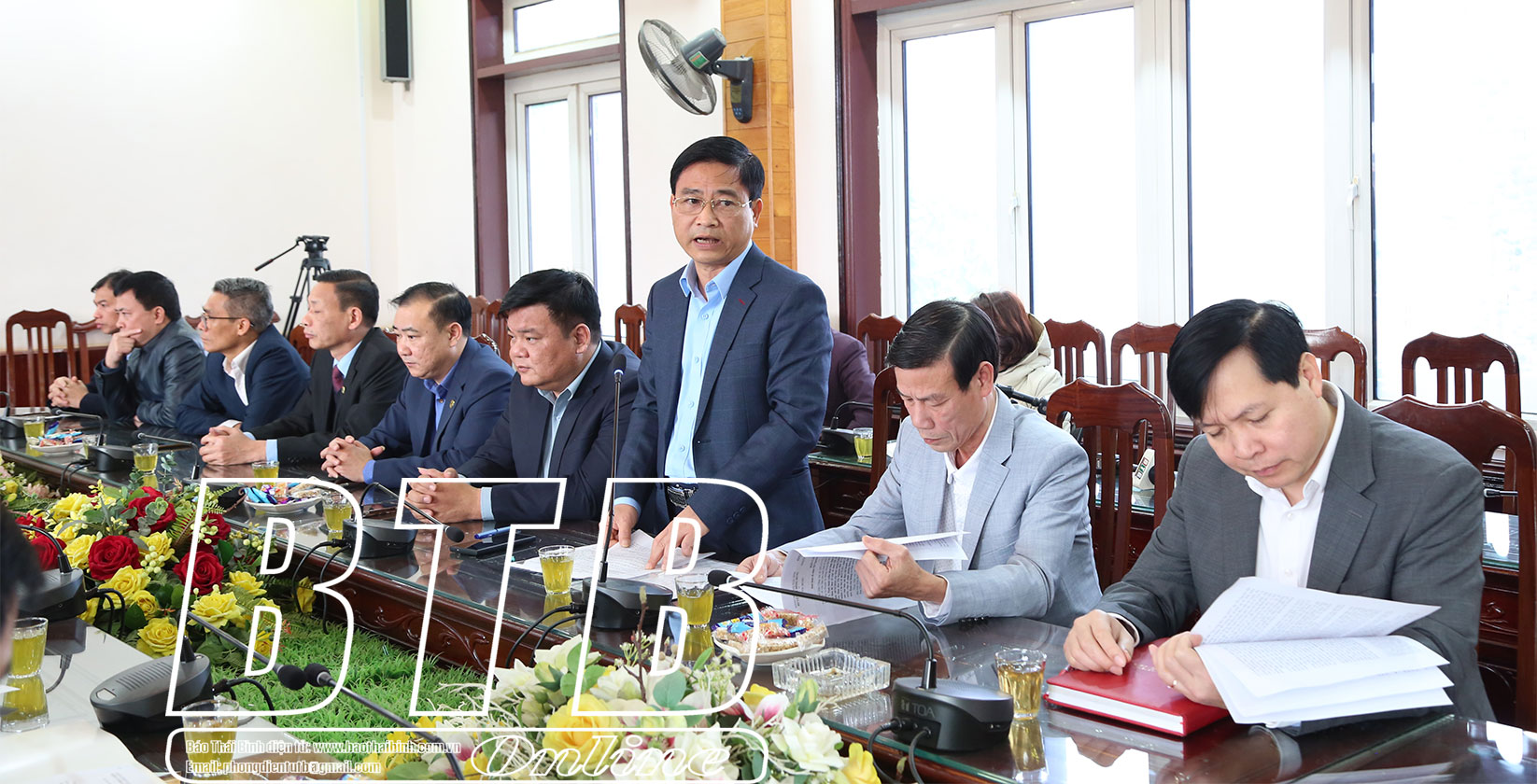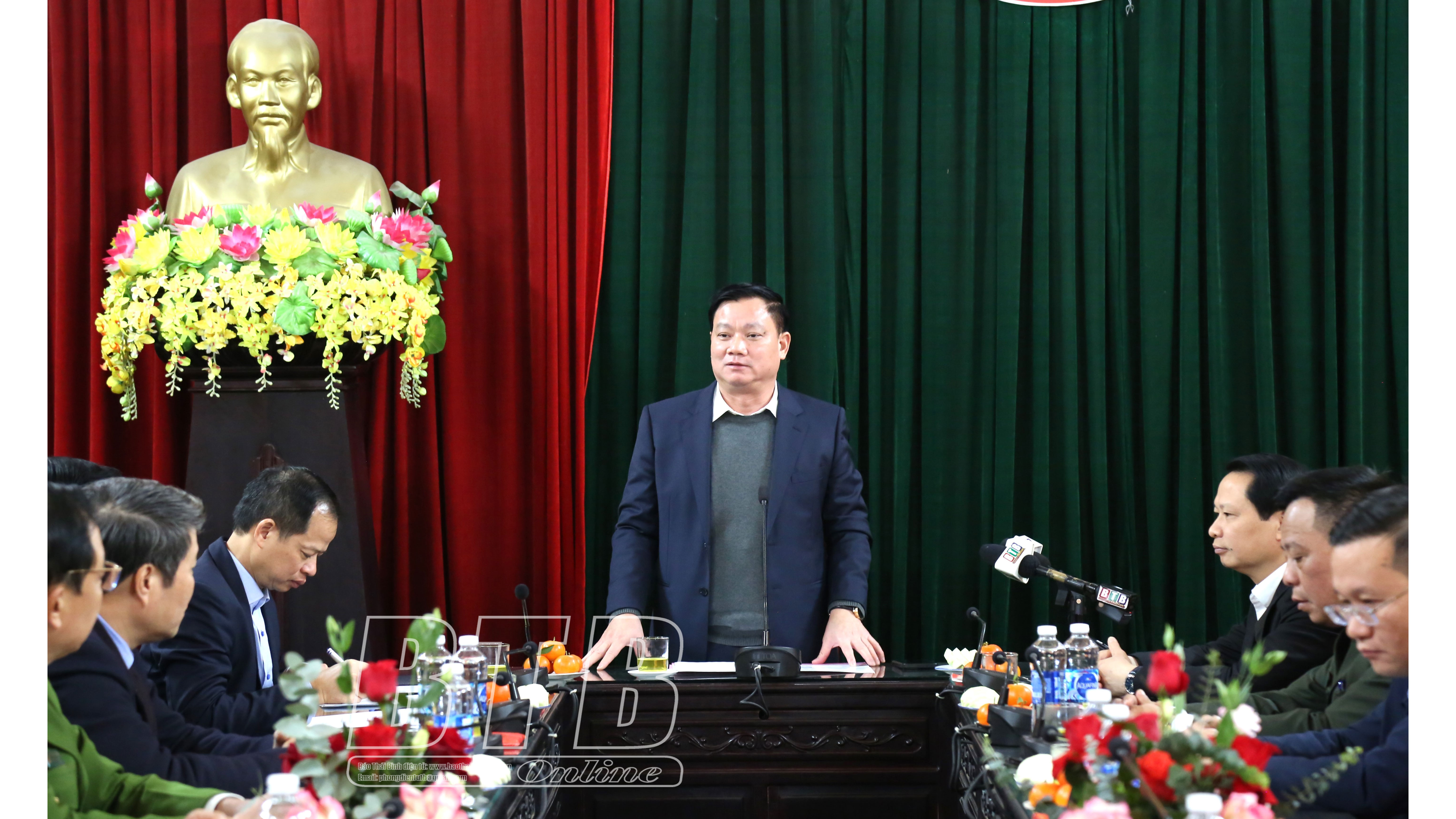 Lãnh đạo huyện Đông Hưng báo cáo công tác chuẩn bị tết Nguyên đán Ất Tỵ 2025 trên địa bàn.