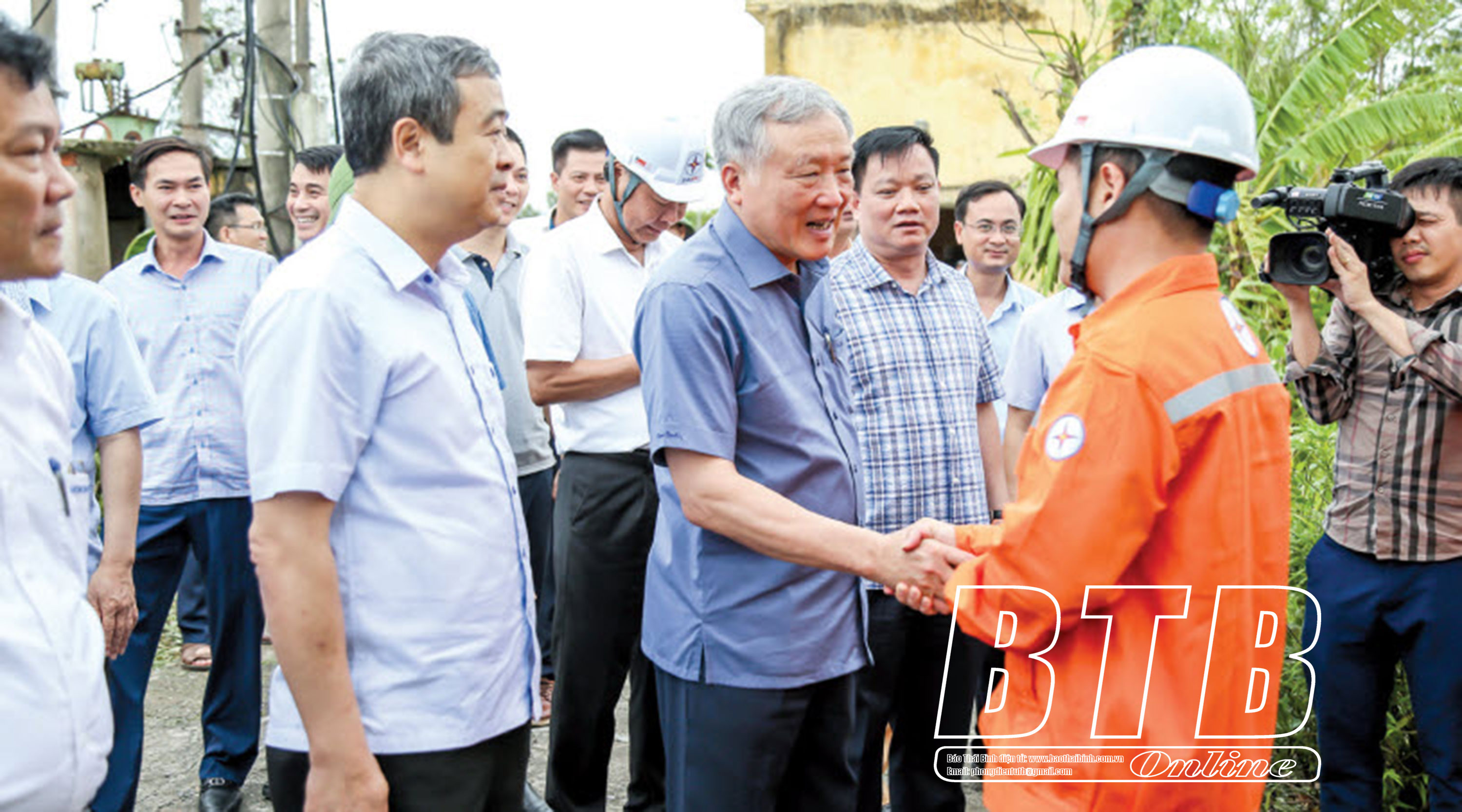Đồng chí Nguyễn Hòa Bình, Ủy viên Bộ Chính trị, Bí thư Trung ương Đảng, Phó Thủ tướng thường trực Chính phủ động viên cán bộ, công nhân viên ngành điện khắc phục khó khăn, sớm khôi phục hạ tầng lưới điện sau bão số 3, ngày 8/9/2024.