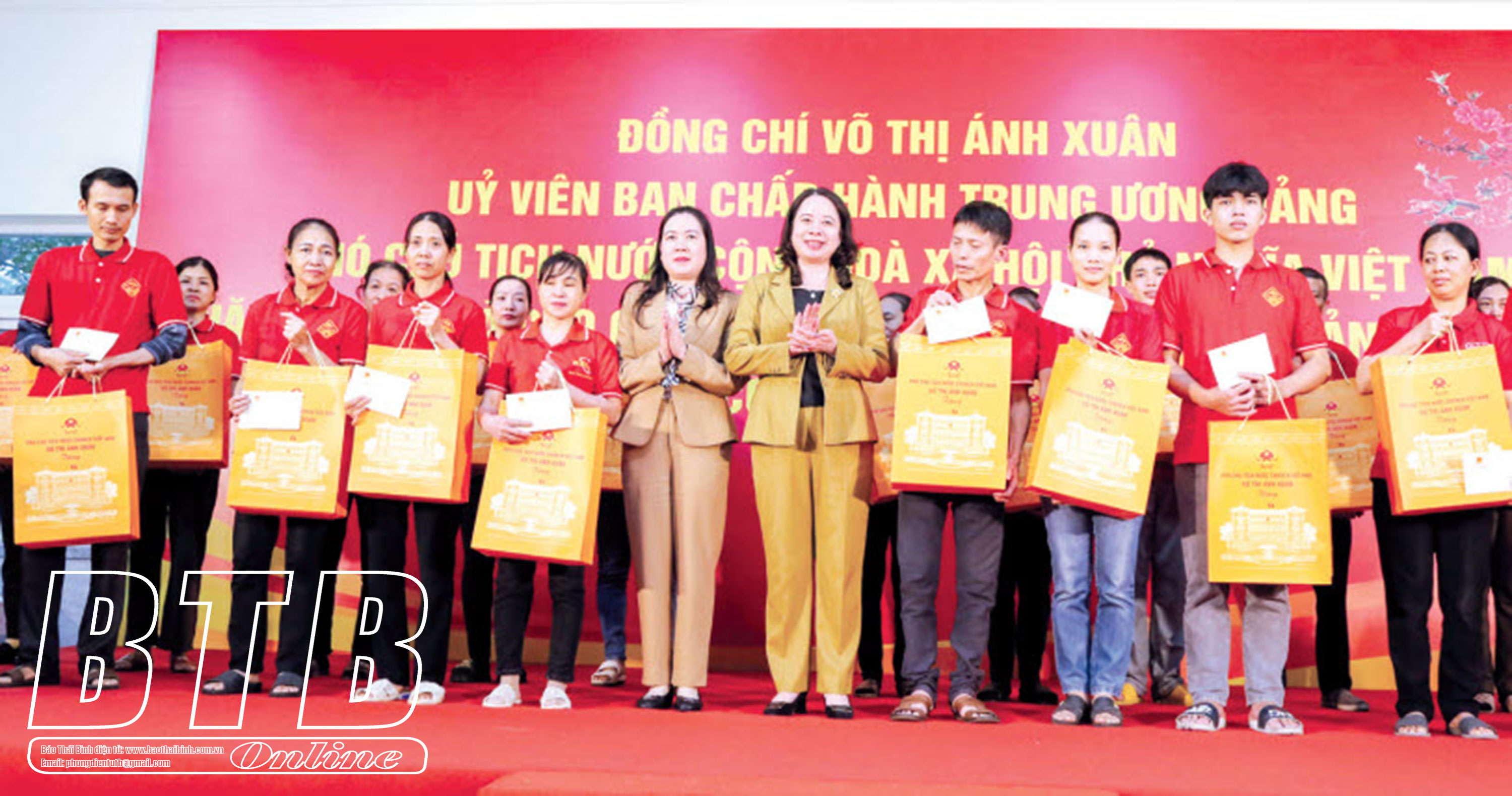 Đồng chí Võ Thị Ánh Xuân, Ủy viên Ban Chấp hành Trung ương Đảng, Phó Chủ tịch nước tặng quà công nhân có hoàn cảnh khó khăn của Công ty Cổ phần Quốc tế Bảo Hưng, ngày 11/1/2024.
