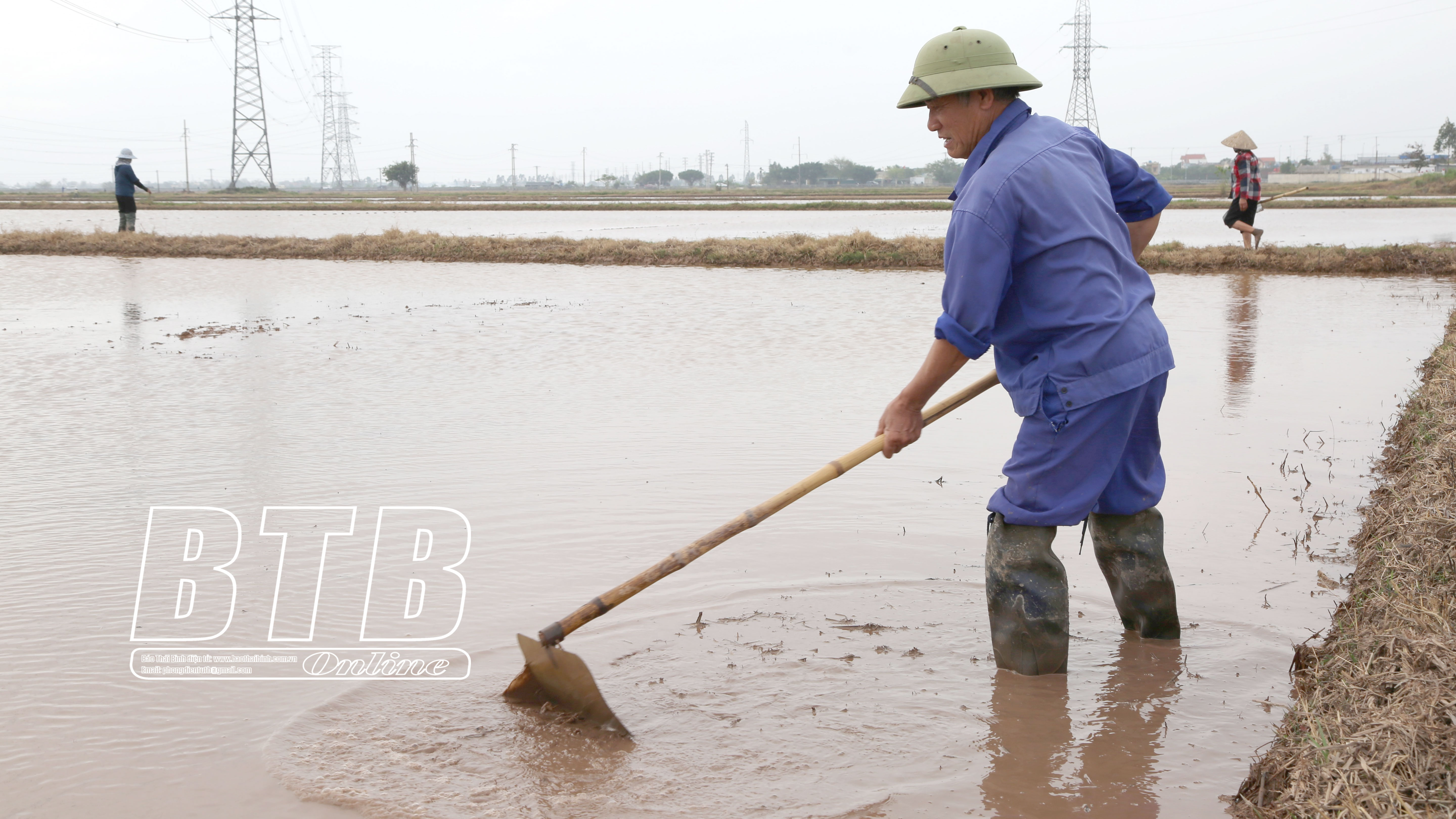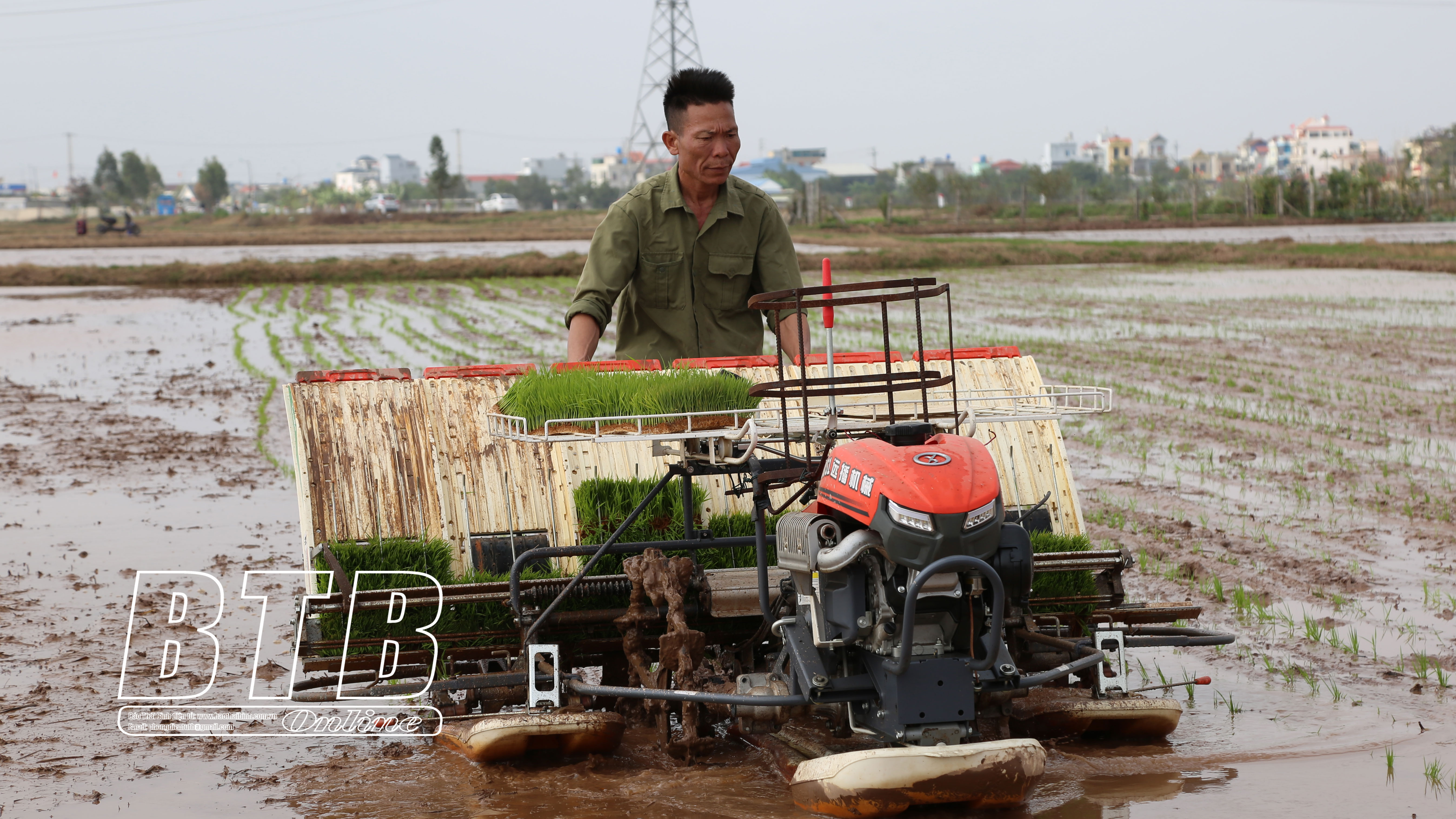 Nông dân xã Đông Tân (Đông Hưng) xuống đồng gieo cấy lúa xuân.