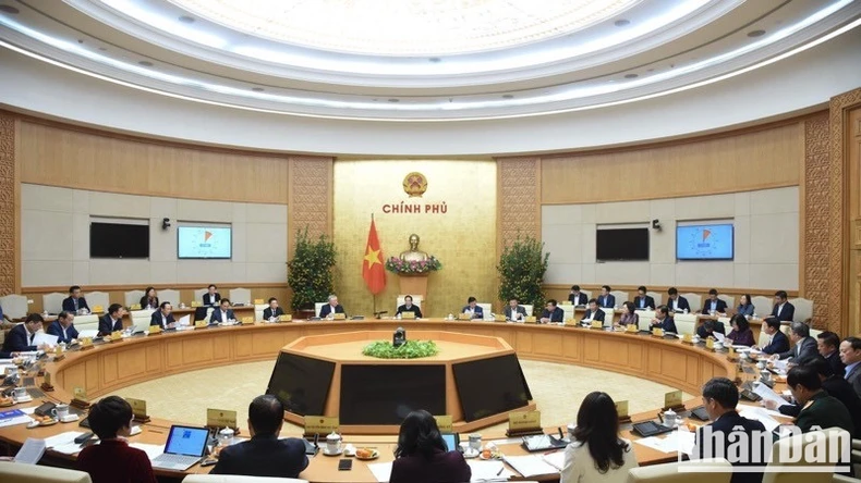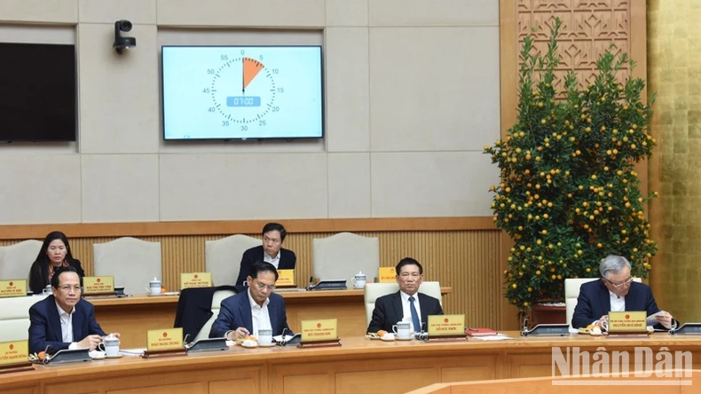 Thủ tướng Phạm Minh Chính chủ trì cuộc họp của Thường trực Chính phủ về triển khai nhiệm vụ phát triển kinh tế-xã hội sau Tết Nguyên đán. (Ảnh: TRẦN HẢI).