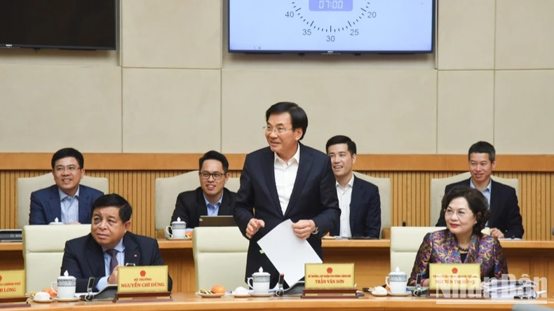 Bộ trưởng, Chủ nhiệm Văn phòng Chính phủ Trần Văn Sơn phát biểu ý kiến tại cuộc họp. (Ảnh: TRẦN HẢI).