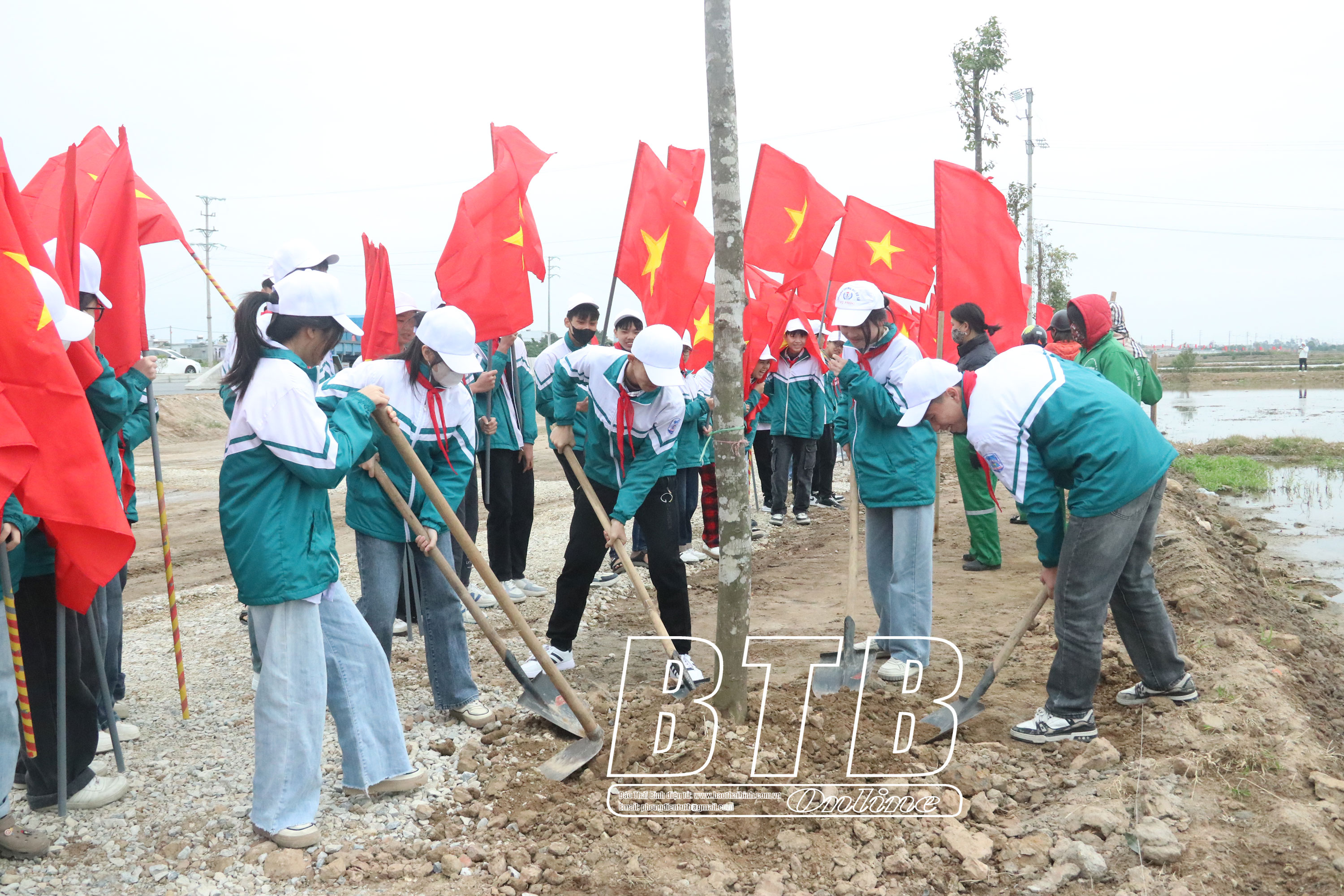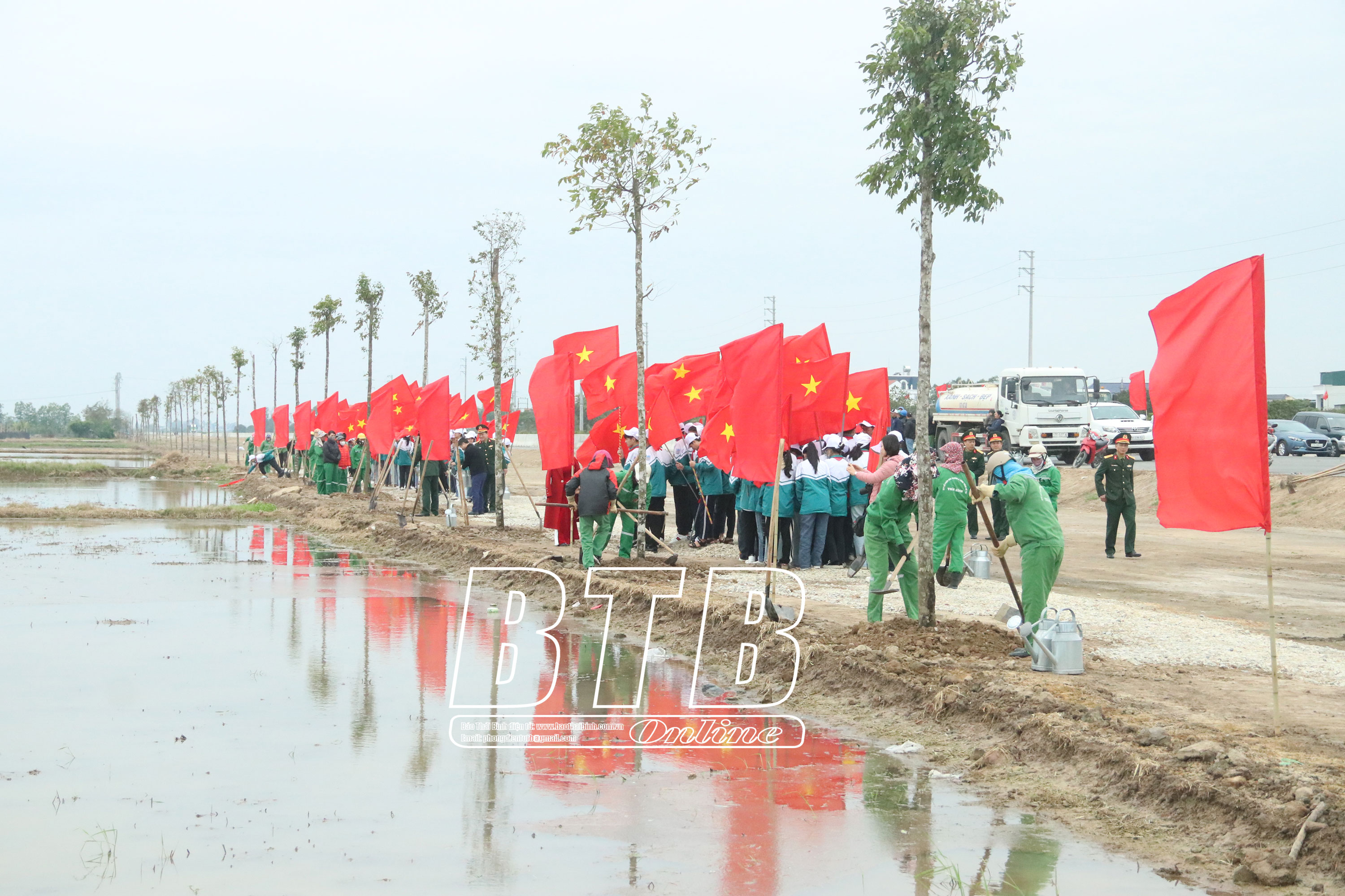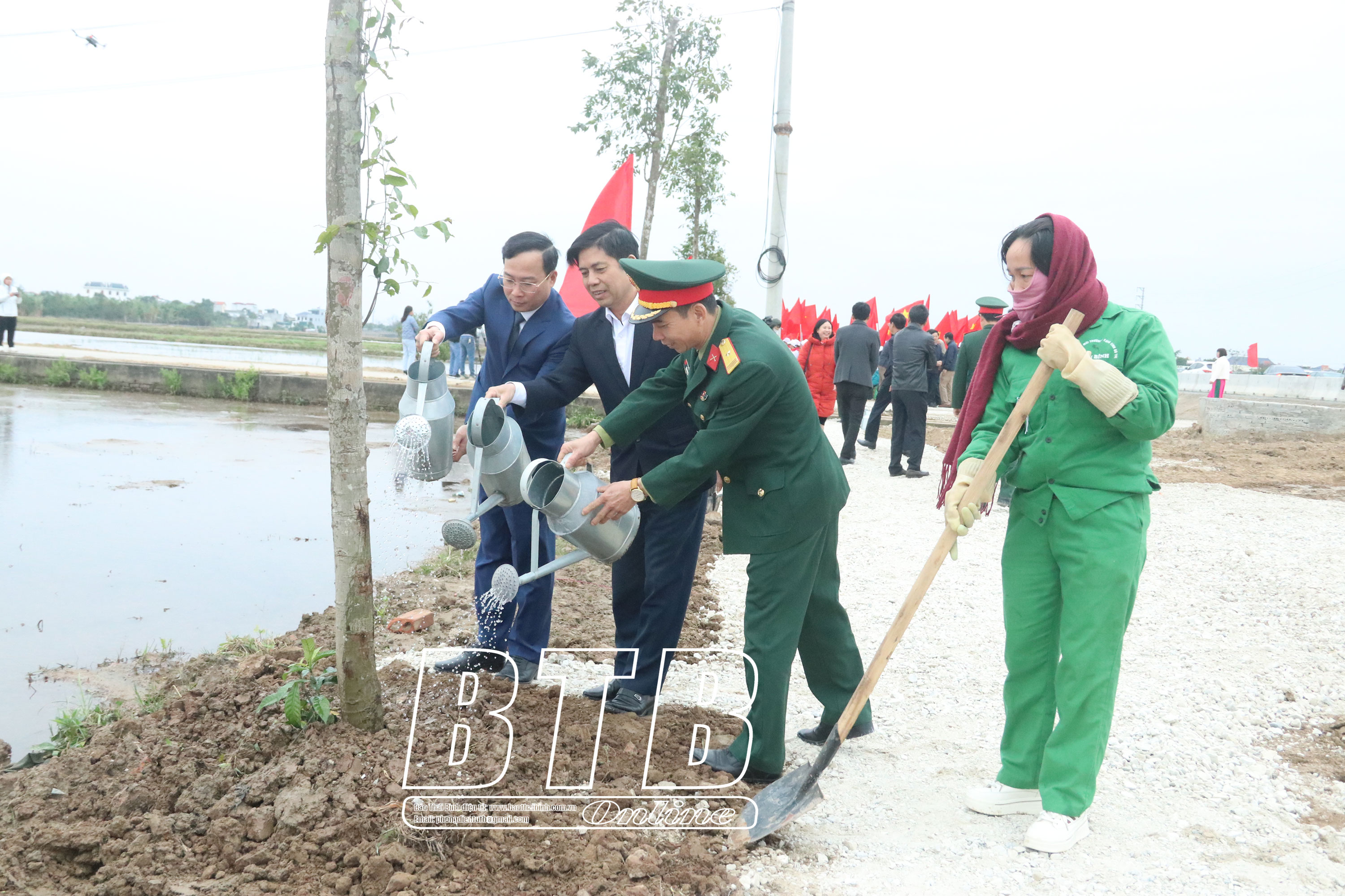 Ngay sau lễ phát động, các đồng chí lãnh đạo tỉnh, thành phố và nhân dân đã tham gia trồng cây xanh tại tuyến đường vành đai phía Nam, xã Vũ Phúc.