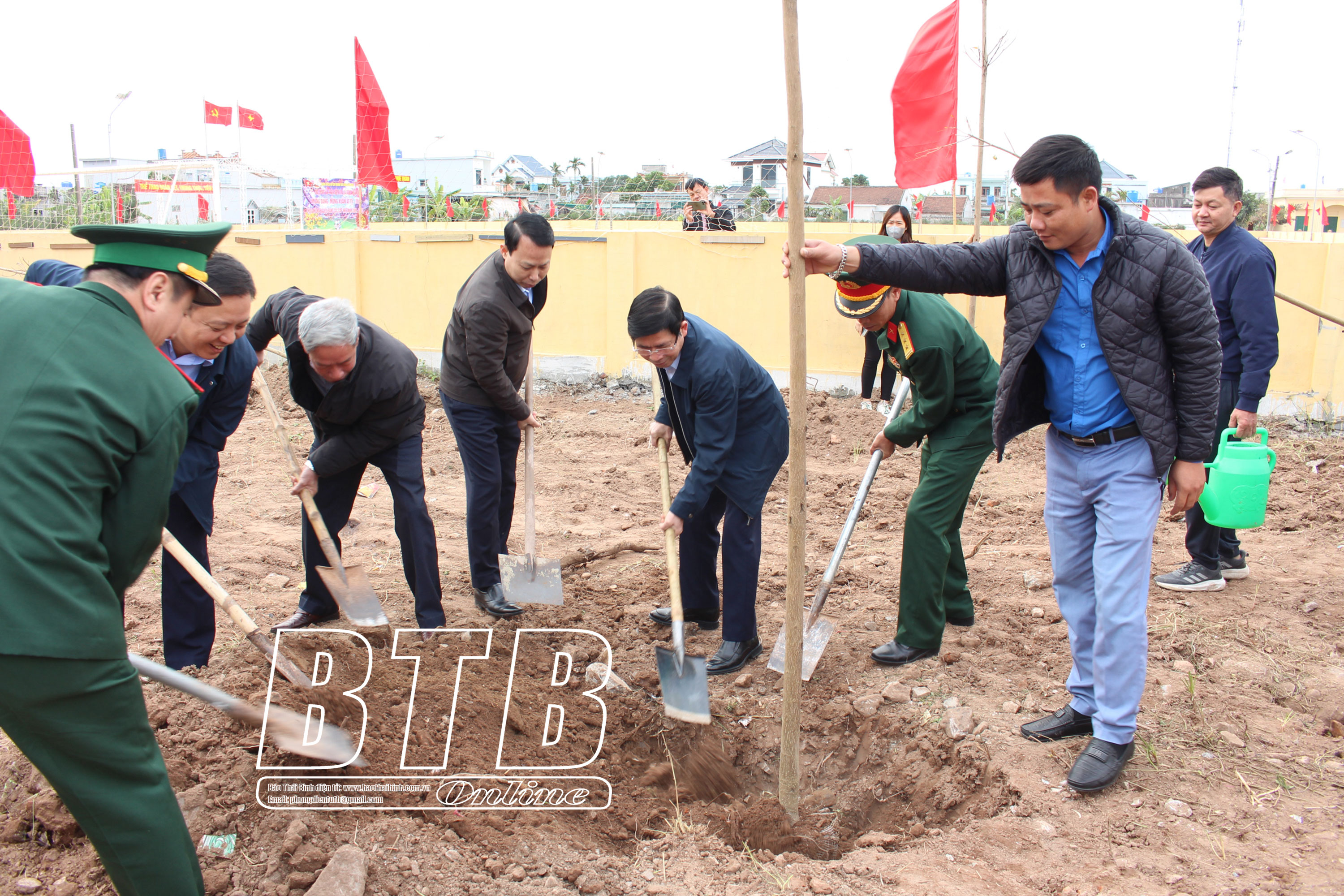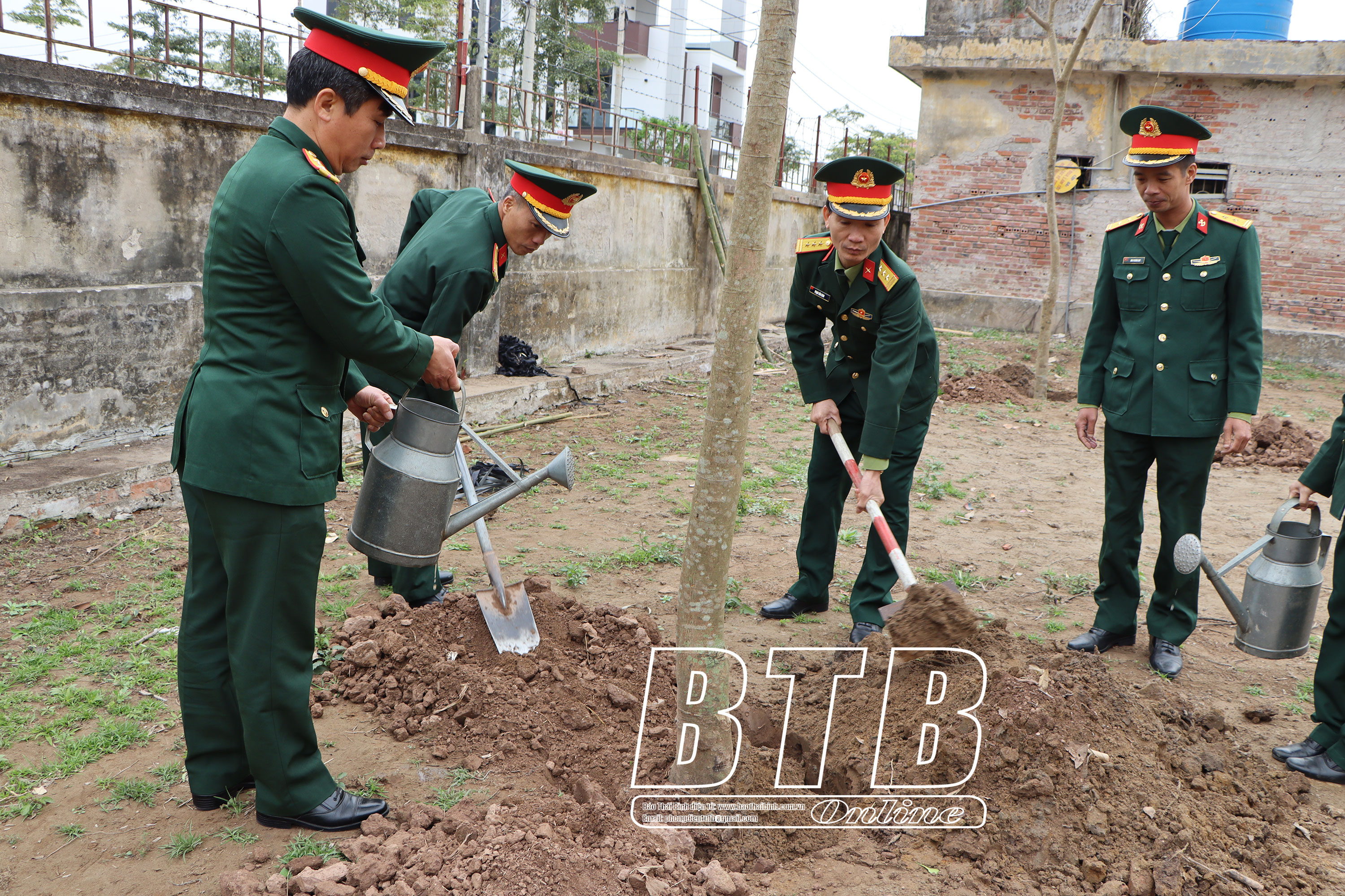 Cán bộ, chiến sĩ huyện Tiền Hải trồng cây nhân dịp đầu xuân. Ảnh: Trần Tuấn