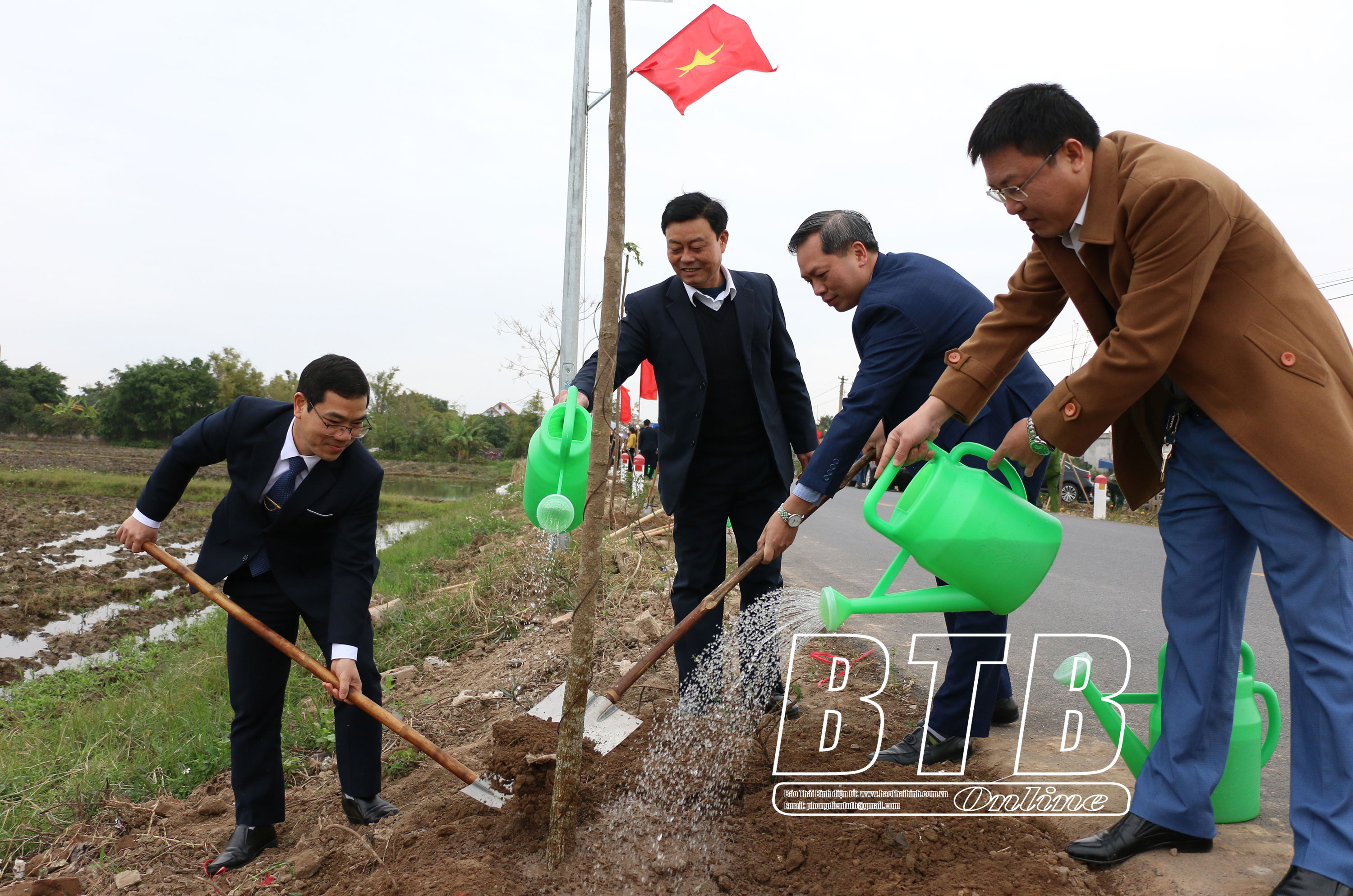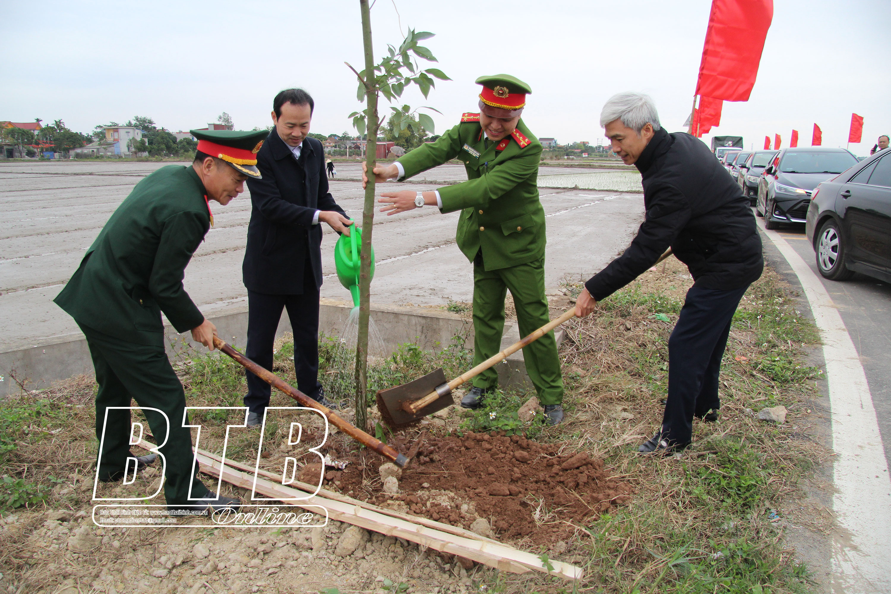 Sau lễ phát động, đồng chí Phó Chủ tịch thường trực HĐND tỉnh cùng đại biểu các sở, ban, ngành của tỉnh, lãnh đạo huyện Vũ Thư, xã Dũng Nghĩa đã tham gia trồng cây xanh tại tuyến đường ĐH.09, đoạn qua địa bàn xã Dũng Nghĩa.