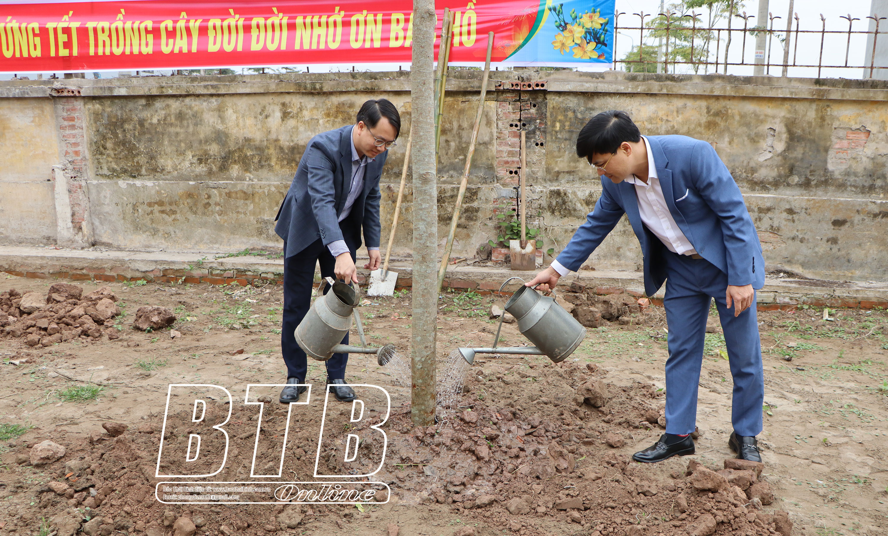 Ngay sau lễ phát động, đồng chí Trưởng ban Nội chính Tỉnh ủy và lãnh đạo một số sở, ngành, đơn vị của tỉnh và huyện Quỳnh Phụ tham gia trồng cây tại khuôn viên UBND xã An Cầu.