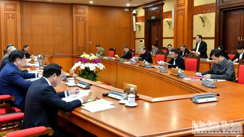 Ngày 4/2, tại Trụ sở Trung ương Đảng, Tổng Bí thư Tô Lâm chủ trì cuộc họp của Ban Bí thư, đánh giá tình hình triển khai thực hiện Chỉ thị số 40-CT/TW của Ban Bí thư về việc tổ chức Tết Ất Tỵ năm 2025; chỉ đạo một số nhiệm vụ trọng tâm của Trung ương, của các cấp ủy trong thời gian tới.