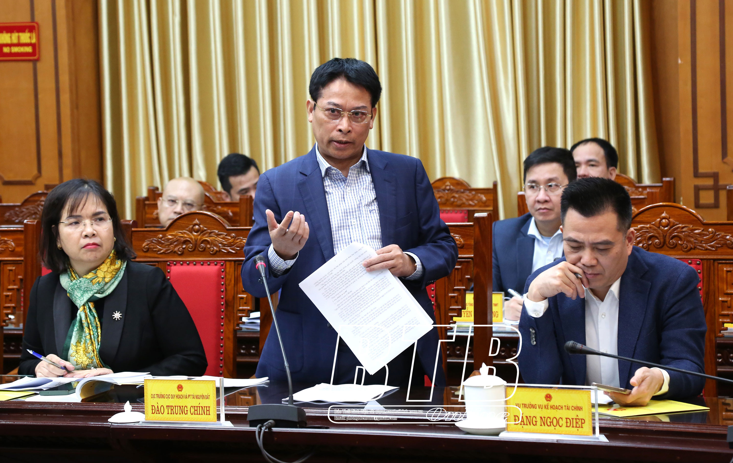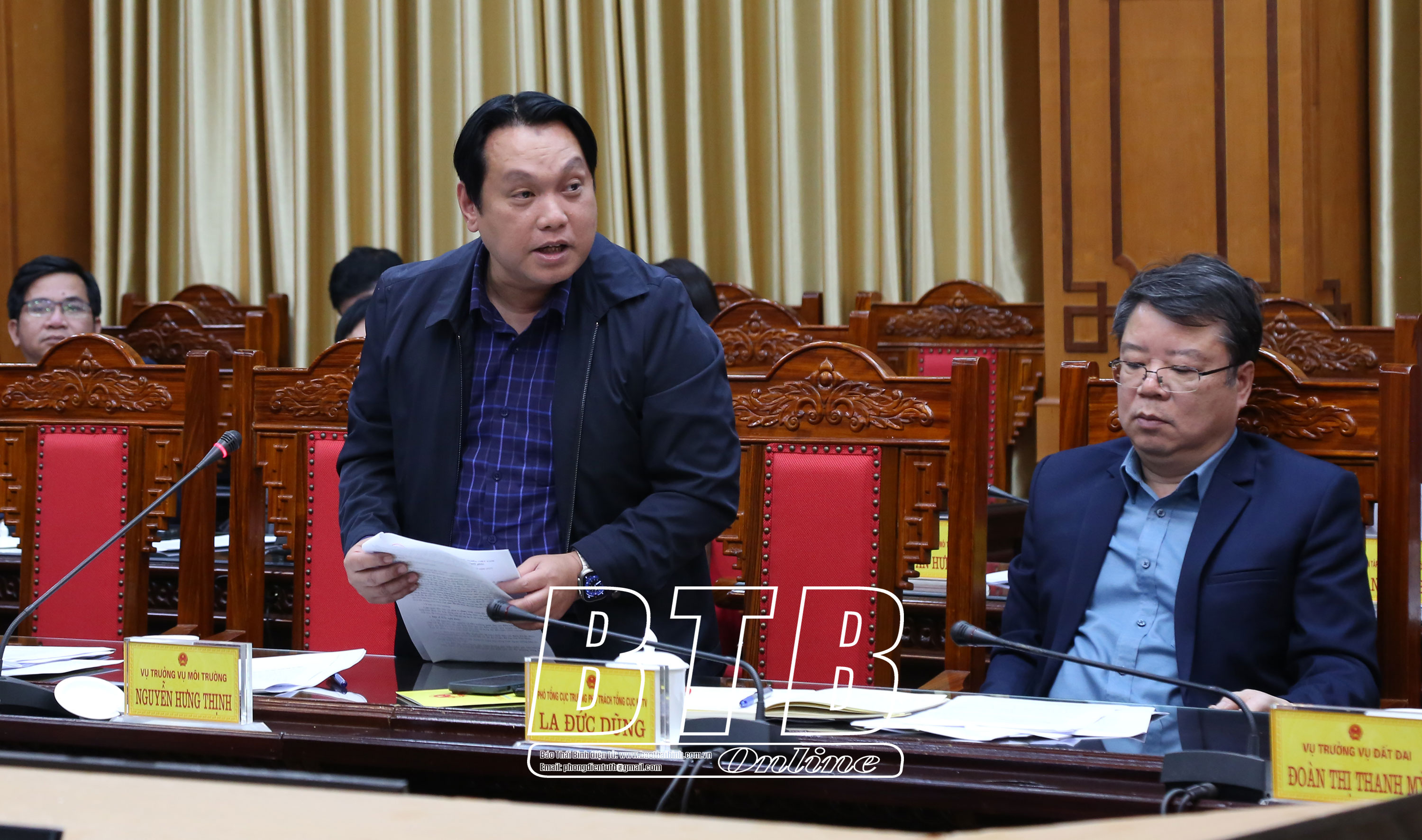 Đại biểu Bộ Tài nguyên và Môi trường phát biểu tại buổi làm việc.