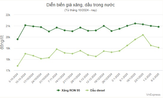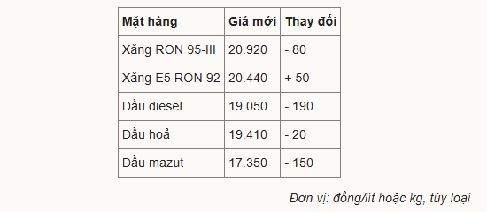 Giá xăng, dầu thay đổi như sau: