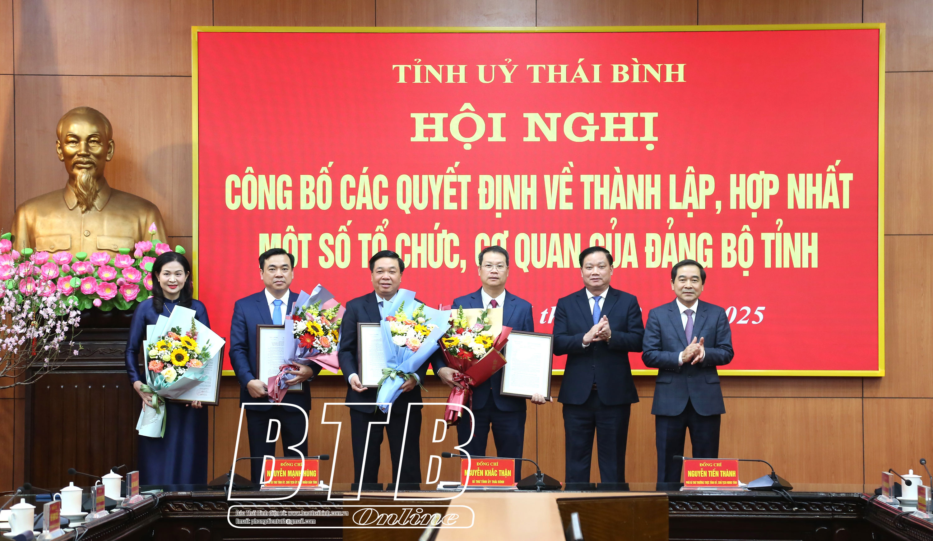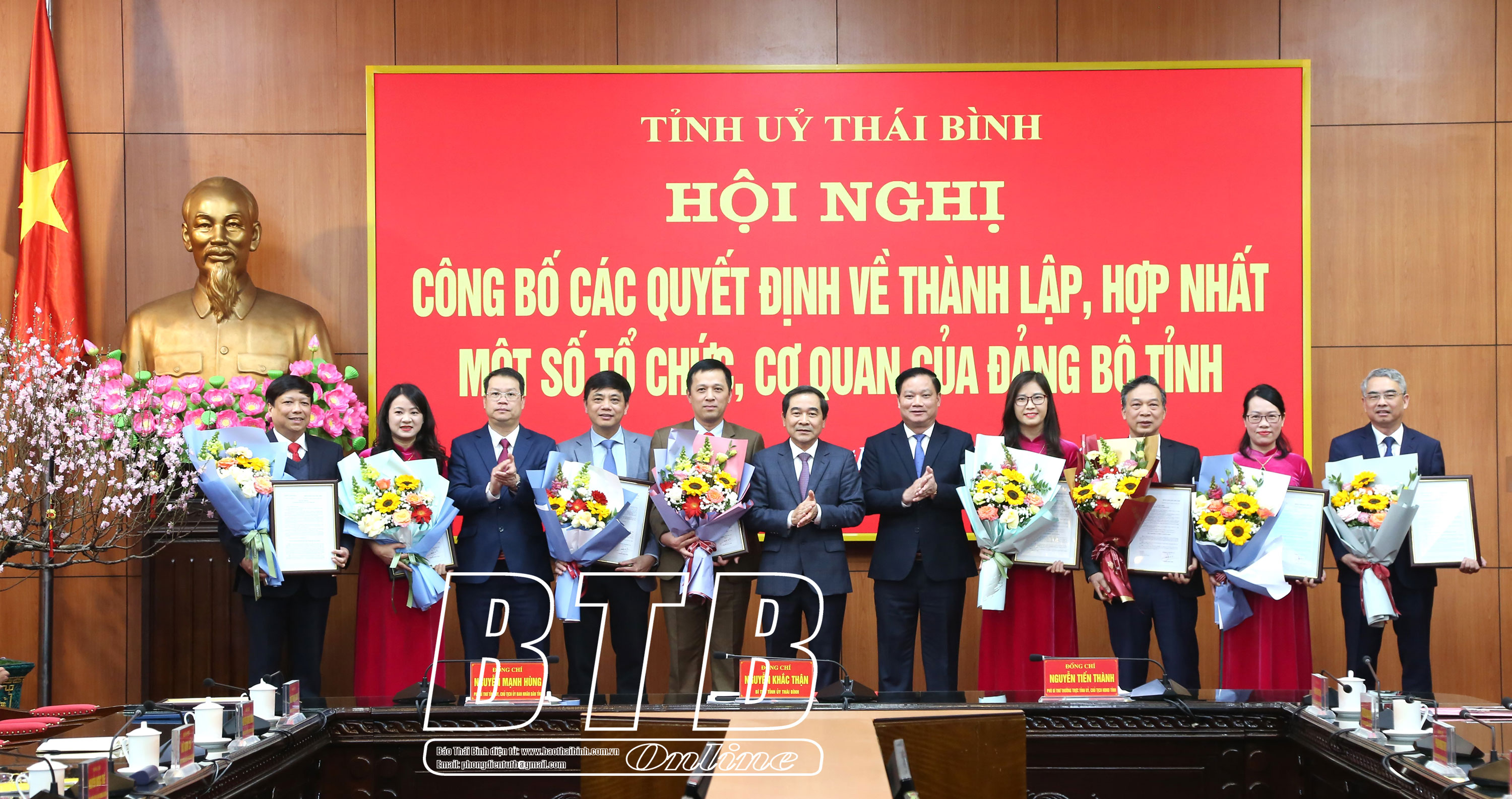 Đồng chí Trưởng ban Tổ chức Tỉnh ủy cũng công bố các quyết định của Ban Thường vụ Tỉnh ủy về việc: hợp nhất Ban Tuyên giáo Tỉnh ủy và Ban Dân vận Tỉnh ủy thành Ban Tuyên giáo và Dân vận Tỉnh ủy; phân công, bổ nhiệm Trưởng ban, các Phó Trưởng ban Tuyên giáo và Dân vận Tỉnh ủy. Đồng chí Phạm Đồng Thụy, Ủy viên Ban Thường vụ, Trưởng ban Tuyên giáo Tỉnh ủy được phân công, bổ nhiệm giữ chức Trưởng ban Tuyên giáo và Dân vận Tỉnh ủy.
