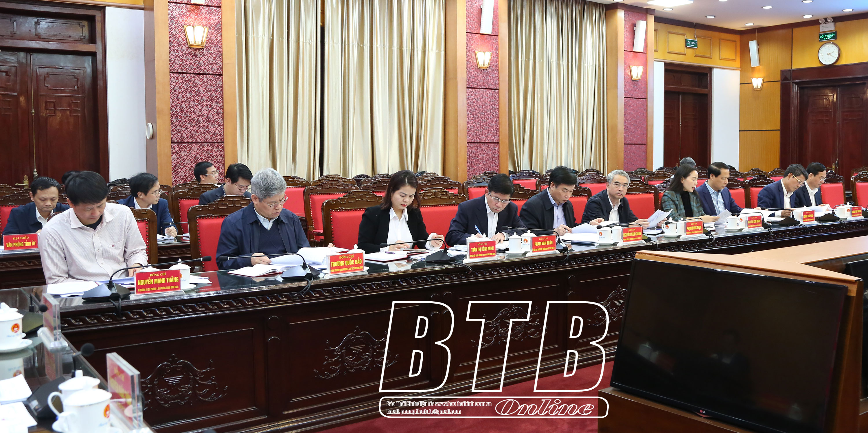 Cũng tại hội nghị, Ban Thường vụ Tỉnh ủy đã thống nhất với các báo cáo, tờ trình về việc chưa thực hiện Đề án thành lập Bệnh viện Ung bướu và Bệnh viện Tim mạch trong Chương trình hành động số 02-CTr/TU, ngày 30/12/2020 của Ban Chấp hành Đảng bộ tỉnh thực hiện Nghị quyết Đại hội Đảng bộ tỉnh lần thứ XX, nhiệm kỳ 2020 - 2025; chủ trương điều chỉnh dự án đầu tư xây dựng và kinh doanh hạ tầng cụm công nghiệp Bình Minh, huyện Kiến Xương của Công ty TNHH Thương mại tổng hợp Thuận Cường; chủ trương điều chỉnh dự án đầu tư xây dựng nhà máy may xuất khẩu tại xã An Tràng, huyện Quỳnh Phụ của Công ty Cổ phần May HNF; chủ trương điều chỉnh dự án nhà máy Greenworks Thái Bình Việt Nam tại khu công nghiệp Liên Hà Thái, huyện Thái Thụy của Công ty TNHH Greenworks Thái Bình; báo cáo về việc triển khai Kết luận số 118-KL/TW, ngày 18/01/2025 của Bộ Chính trị về việc điều chỉnh, bổ sung một số nội dung Chỉ thị số 35-CT/TW, ngày 14/6/2024 của Bộ Chính trị (khóa XIII) về đại hội đảng bộ các cấp tiến tới Đại hội đại biểu toàn quốc lần thứ XIV của Đảng; đồng thời nghe và cho ý kiến một số nội dung về công tác cán bộ.