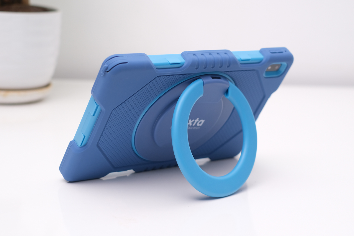 Chân đế xoay 360 độ và linh hoạt trong việc đặt tư thế sử dụng, ngang dọc và các góc để khác nhau. Máy chủ yếu sử dụng ở tư thế dọc do giới hạn của ứng dụng học có sẵn. Với các phần mềm học online, xem video, có thể chuyển sang chế độ ngang và tận dụng camera trước 2 megapixel.