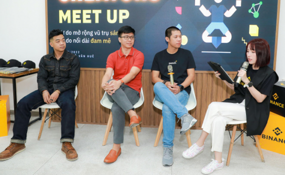 Từ trái sang phải, ông Hai Nguyen, Giám đốc nghệ thuật của Sipher; ông Leo Đinh, CEO Sun Wolf; ông Nguyễn Tiến Huy, CEO Pencil và bà Lynn Hoàng, Giám đốc quốc gia Binance.