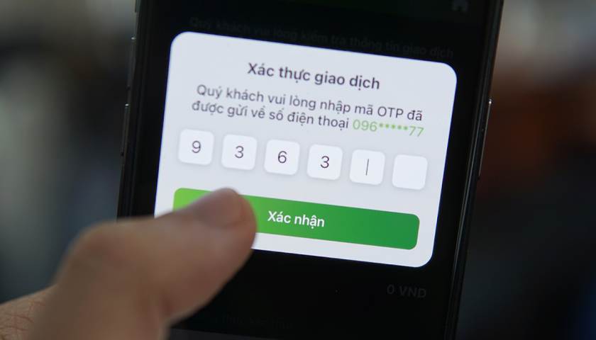 Giao diện nhập mã OTP trên một ứng dụng ngân hàng.