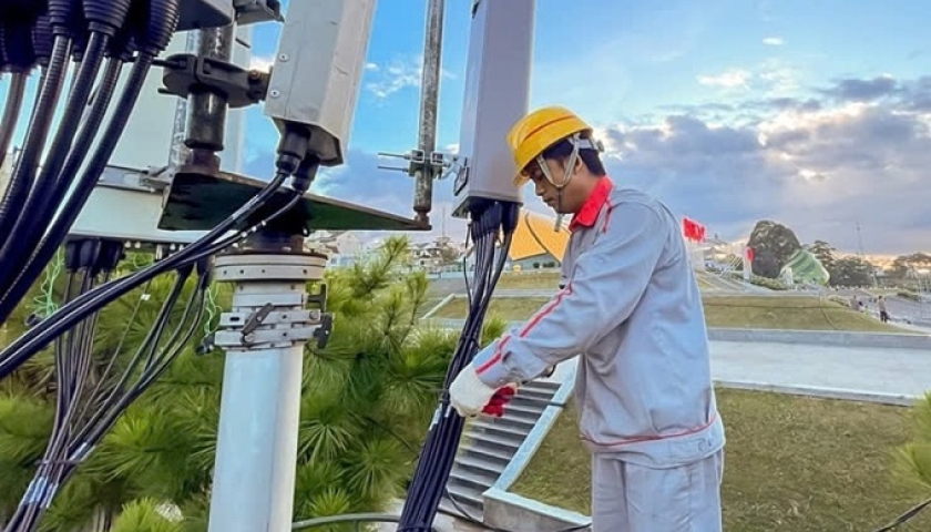 Kỹ thuật viên Viettel tại một trạm 5G thử nghiệm.