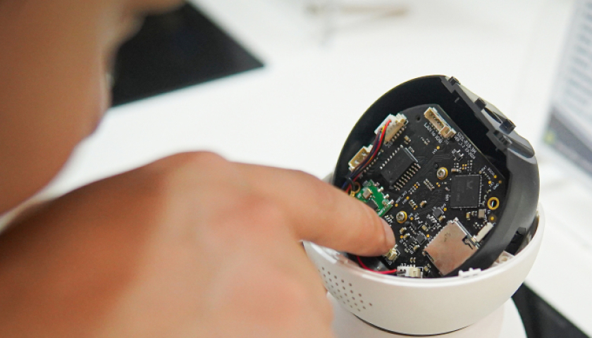Một người đang xem mẫu camera sử dụng chip nguồn do doanh nghiệp Việt phát triển, tháng 10/2024.
