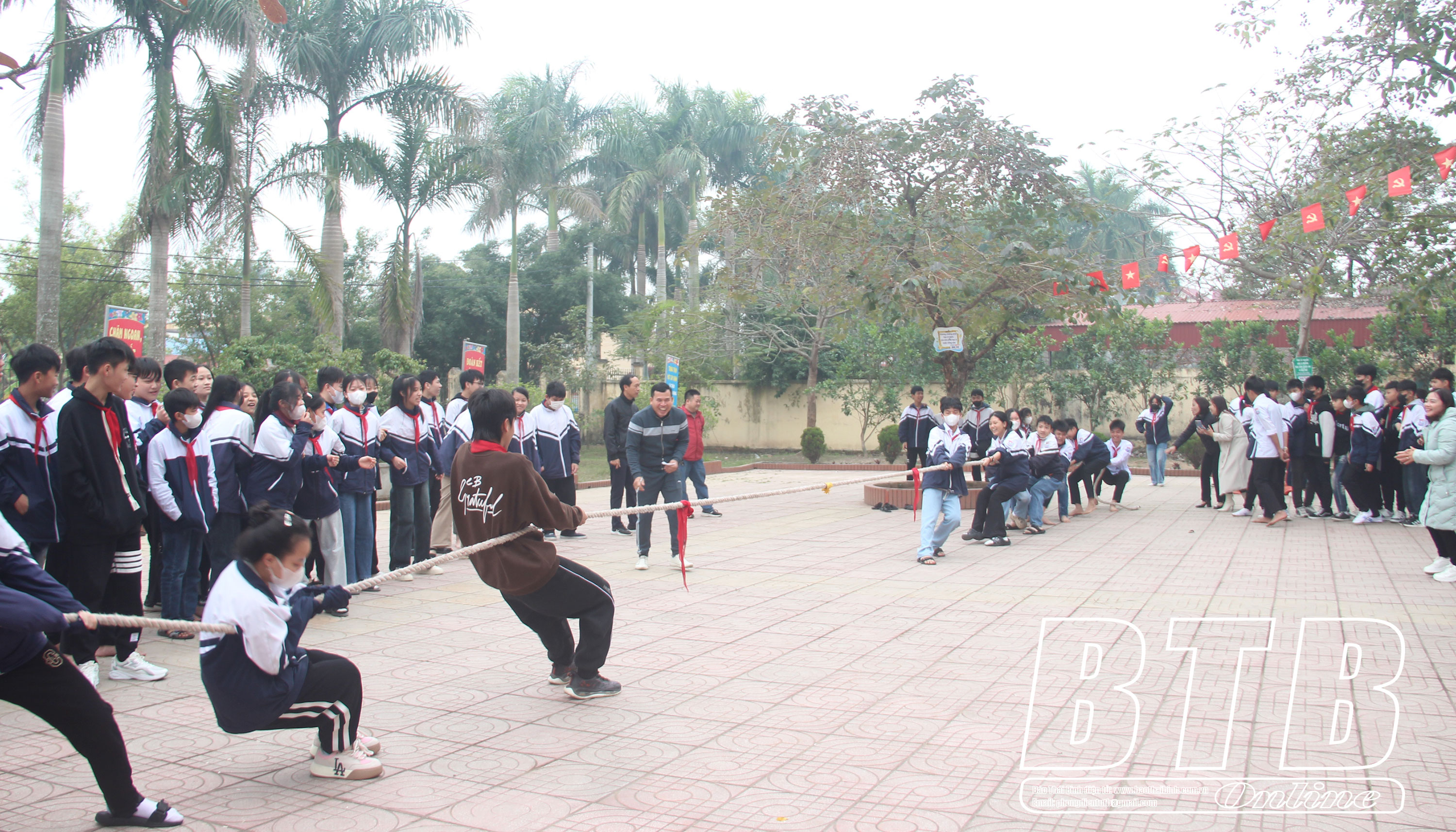 Trường Tiểu học và THCS Dũng Nghĩa (Vũ Thư) tổ chức các trò chơi dân gian thu hút sự tham gia của đông đảo học sinh.