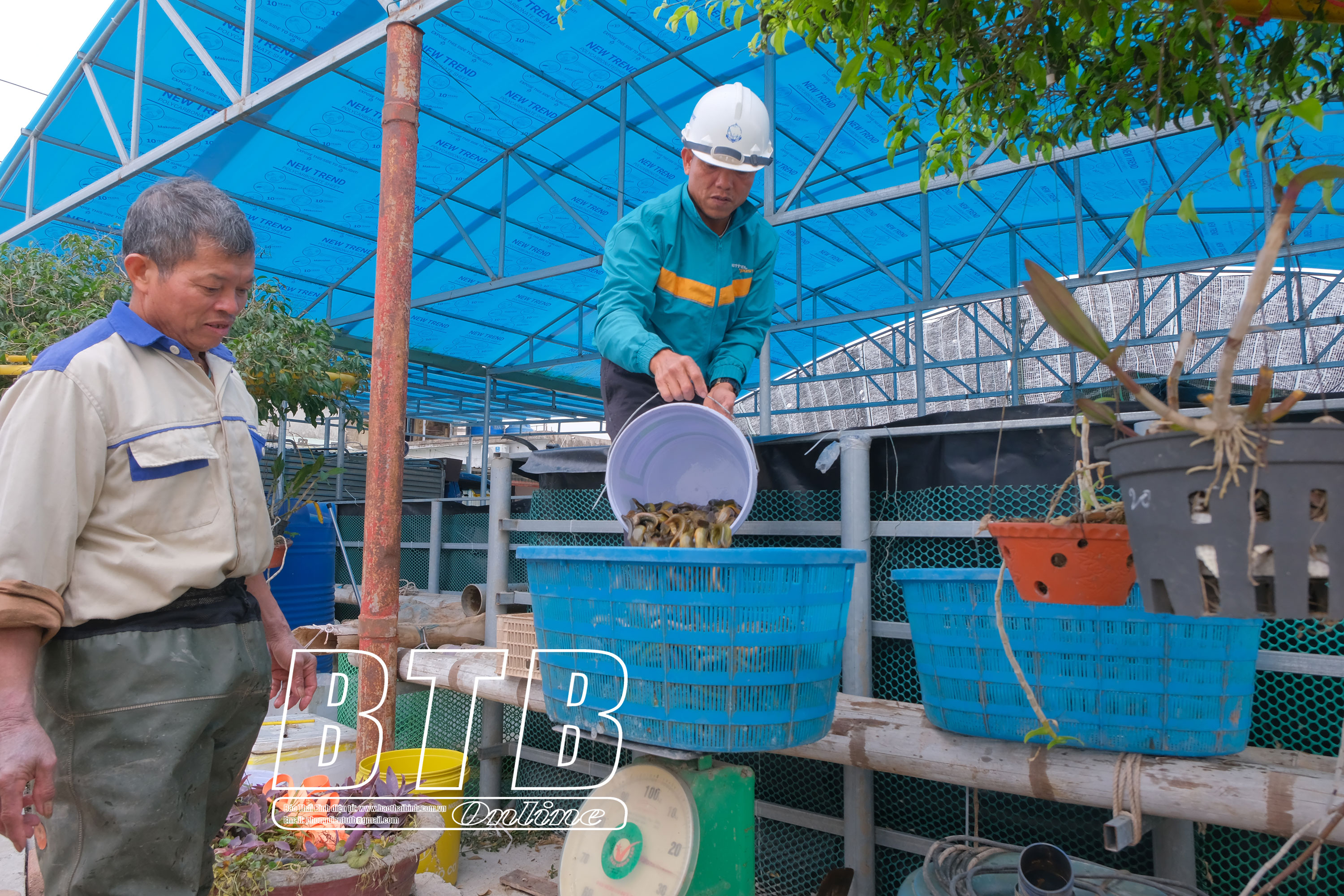 Thương lái trực tiếp đến thu mua chạch sụn của gia đình anh Nguyễn Sông Đà, xã Nam Bình (Kiến Xương).