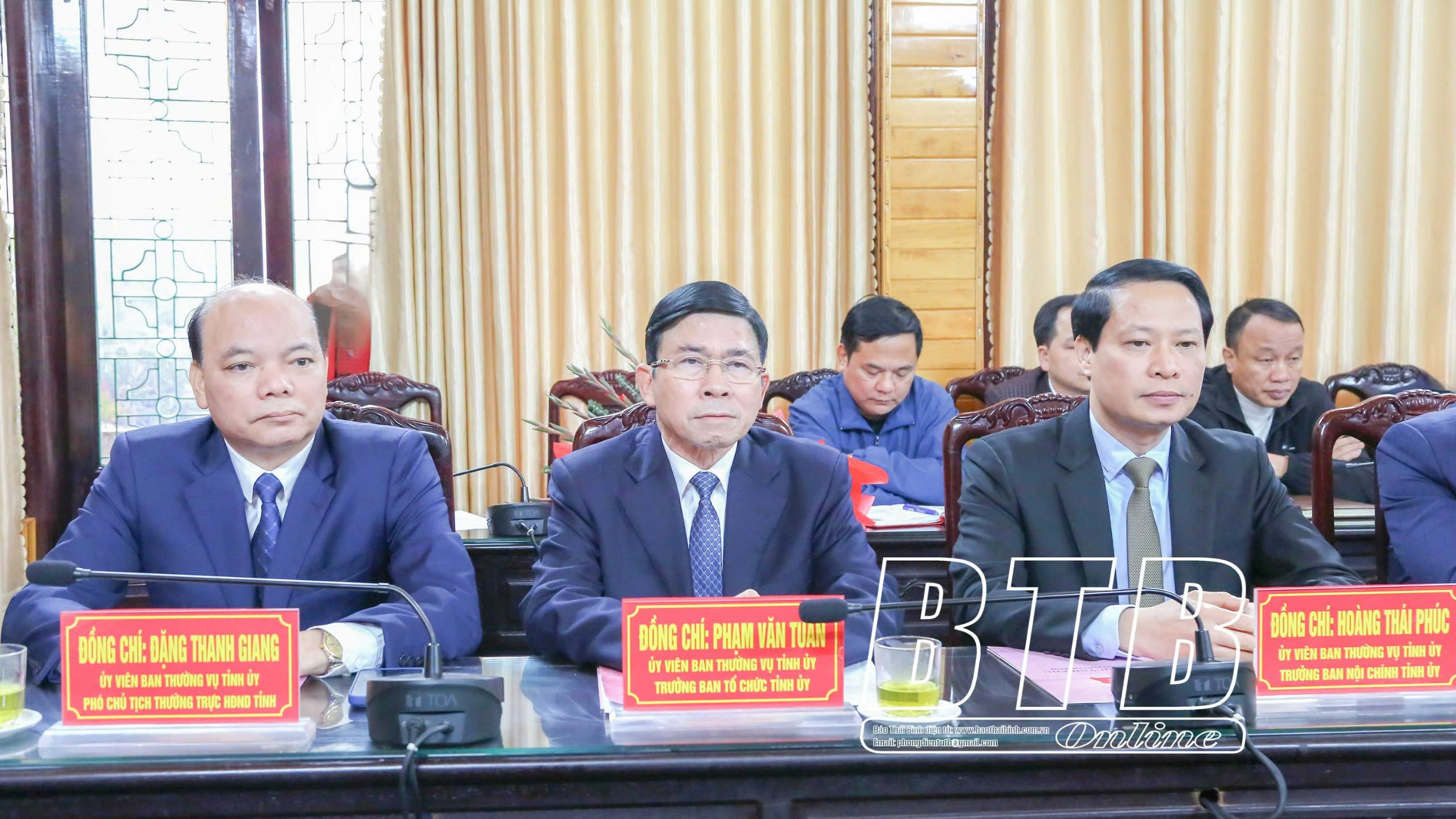 Dự hội nghị có các đồng chí: Đặng Thanh Giang, Ủy viên Ban Thường vụ Tỉnh ủy, Phó Chủ tịch thường trực HĐND tỉnh; Phạm Văn Tuân, Ủy viên Ban Thường vụ, Trưởng ban Tổ chức Tỉnh ủy; Hoàng Thái Phúc, Ủy viên Ban Thường vụ, Trưởng ban Nội Chính Tỉnh ủy.