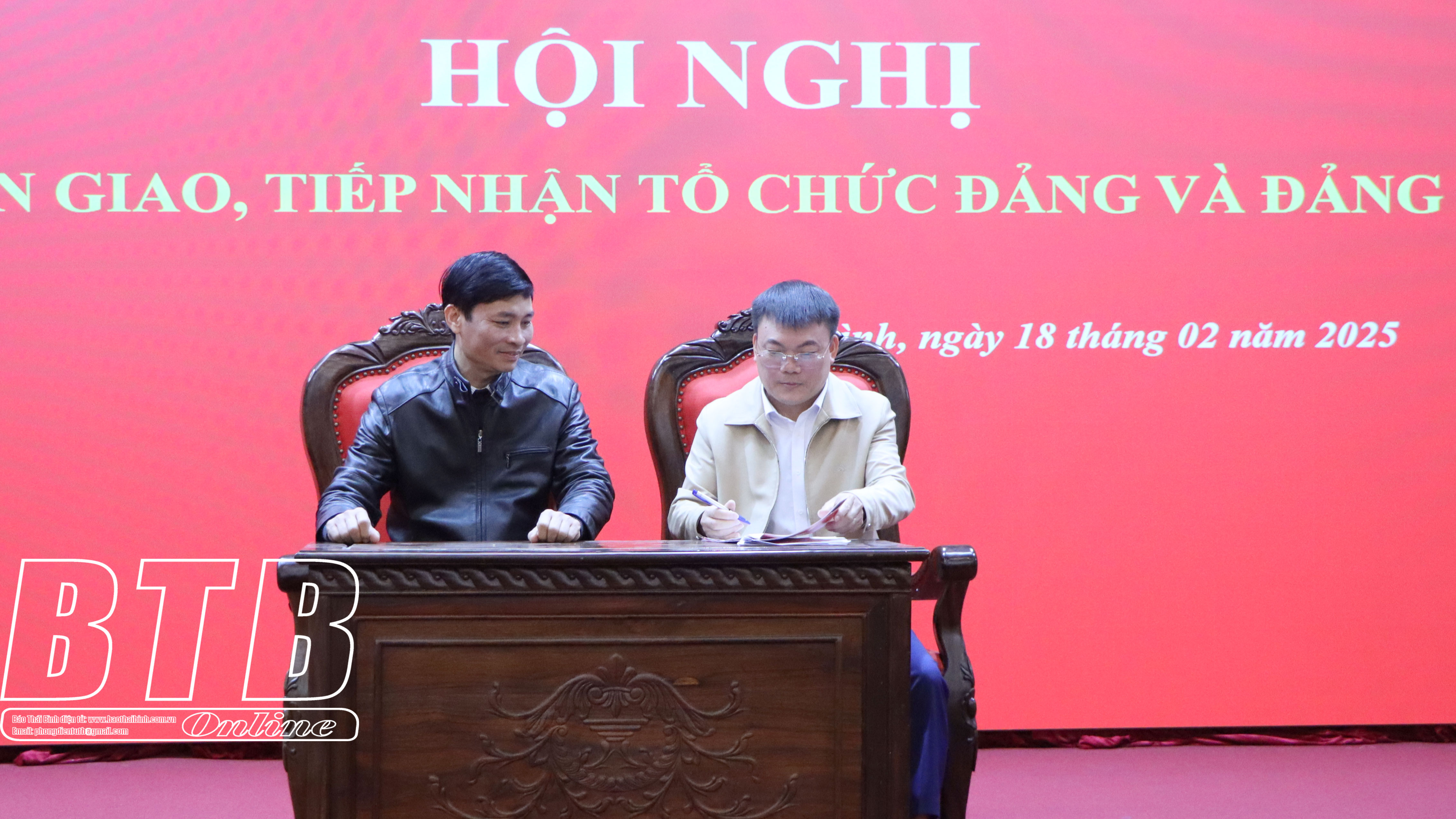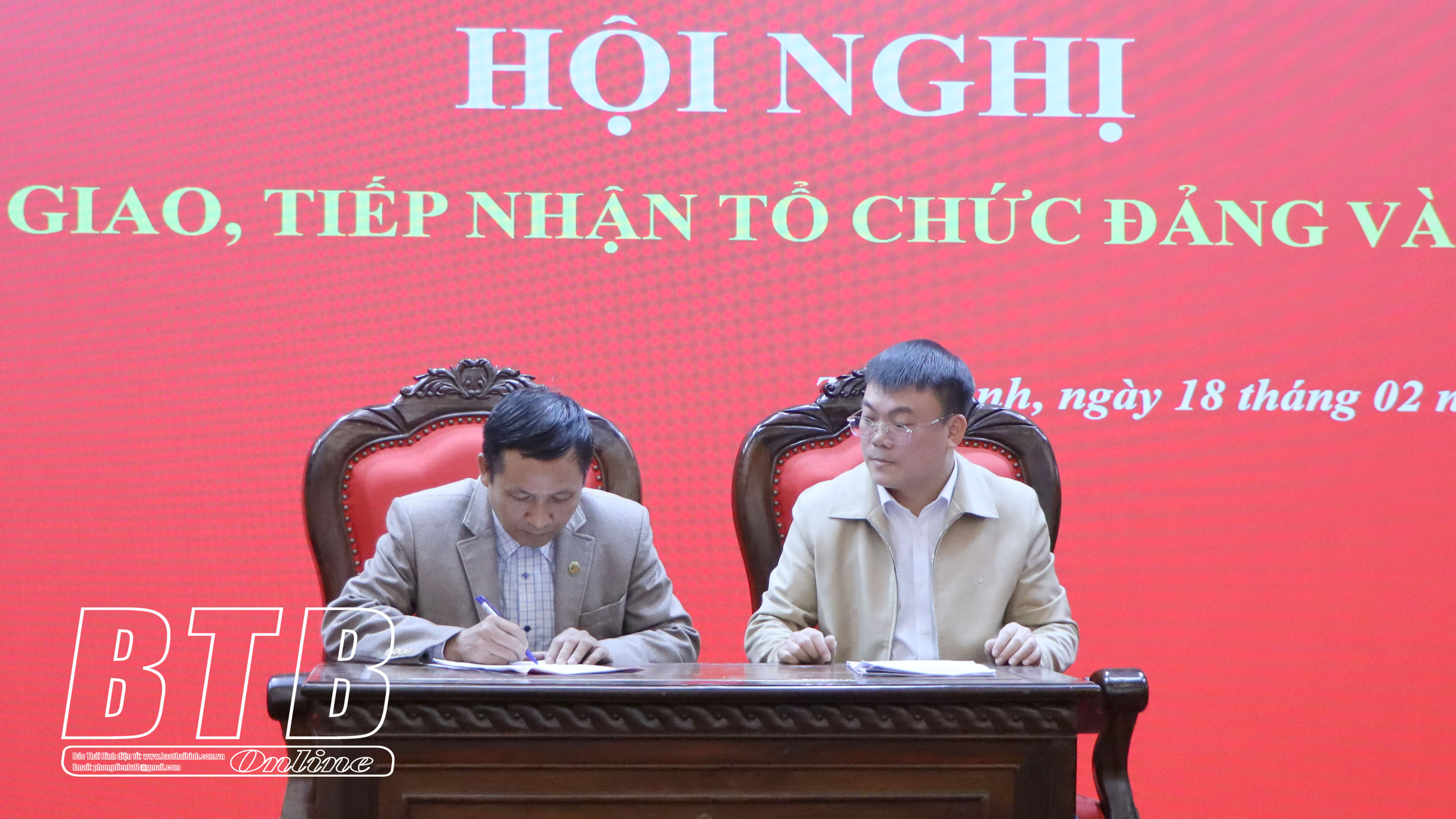 Sáng ngày 18/2, Ban Thường vụ Đảng ủy Khối các cơ quan và doanh nghiệp tỉnh phối hợp với ban thường vụ các huyện ủy, thành ủy tổ chức hội nghị chuyển giao, tiếp nhận tổ chức đảng và đảng viên. Dự hội nghị có các đồng chí: Ngô Thị Kim Hoàn, Ủy viên Ban Thường vụ, Chủ nhiệm Ủy ban Kiểm tra Tỉnh ủy; Nguyễn Văn Giang, Ủy viên Ban Thường vụ, Phó Trưởng ban thường trực Ban Tổ chức Tỉnh ủy, Phó Bí thư thường trực Đảng ủy các cơ quan Đảng tỉnh; Hoàng Văn Thành, Ủy viên Ban Thường vụ Tỉnh ủy, Bí thư Thành ủy, Chủ tịch HĐND thành phố Thái Bình.