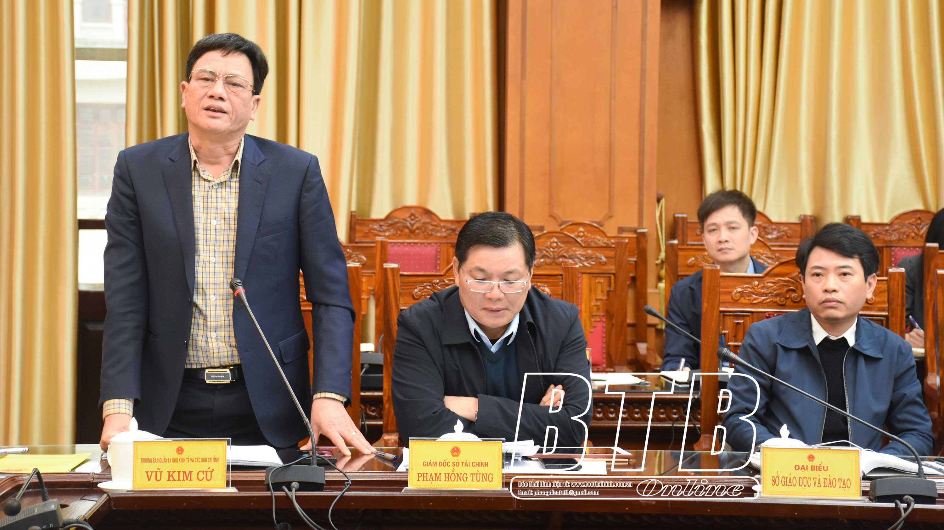 Đồng chí Vũ Kim Cứ, Ủy viên Ban Thường vụ Tỉnh ủy, Trưởng ban Quản lý Khu kinh tế và các khu công nghiệp tỉnh phát biểu tại cuộc họp.