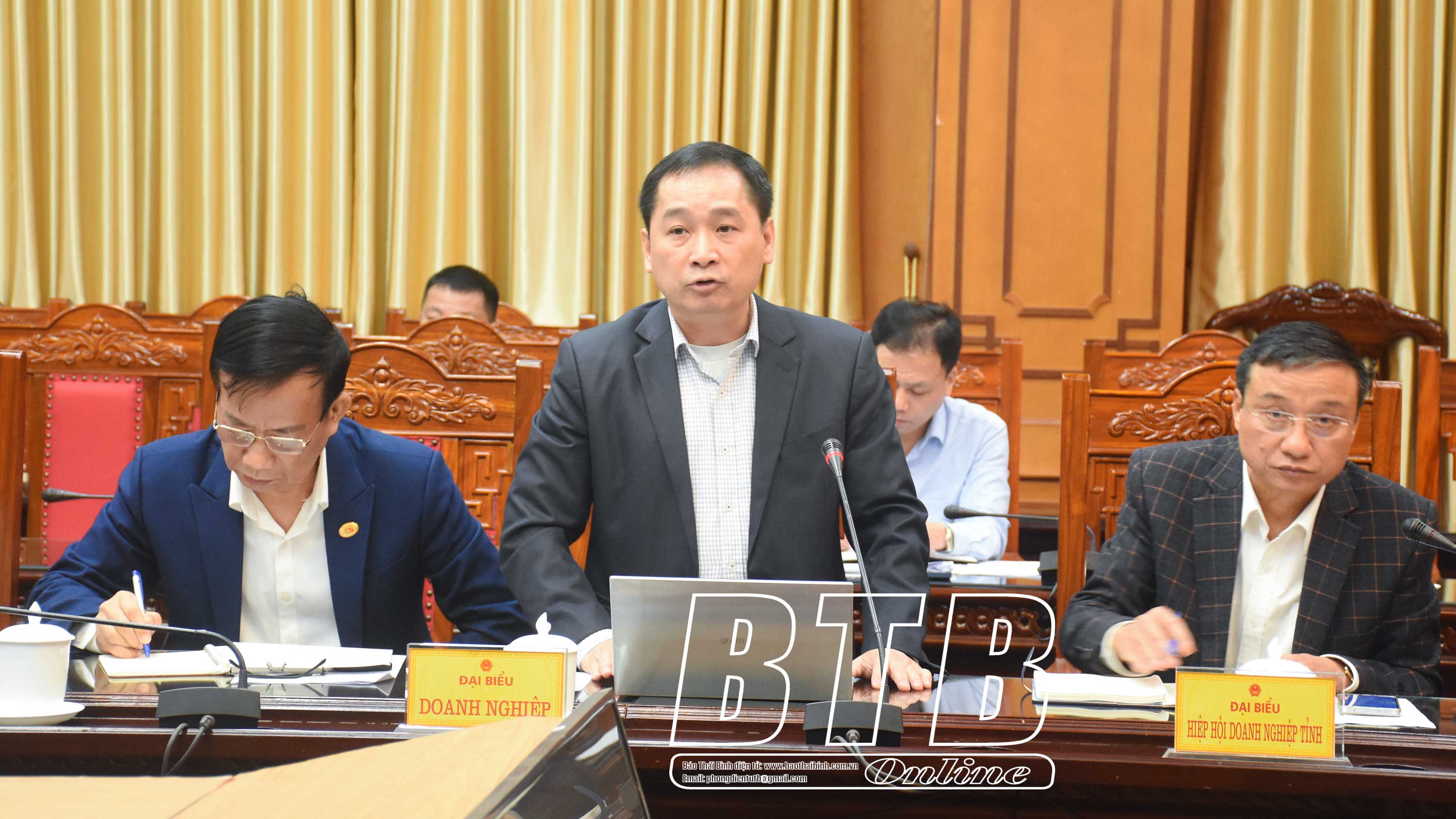 Đại diện các doanh nghiệp phát biểu tại cuộc họp.