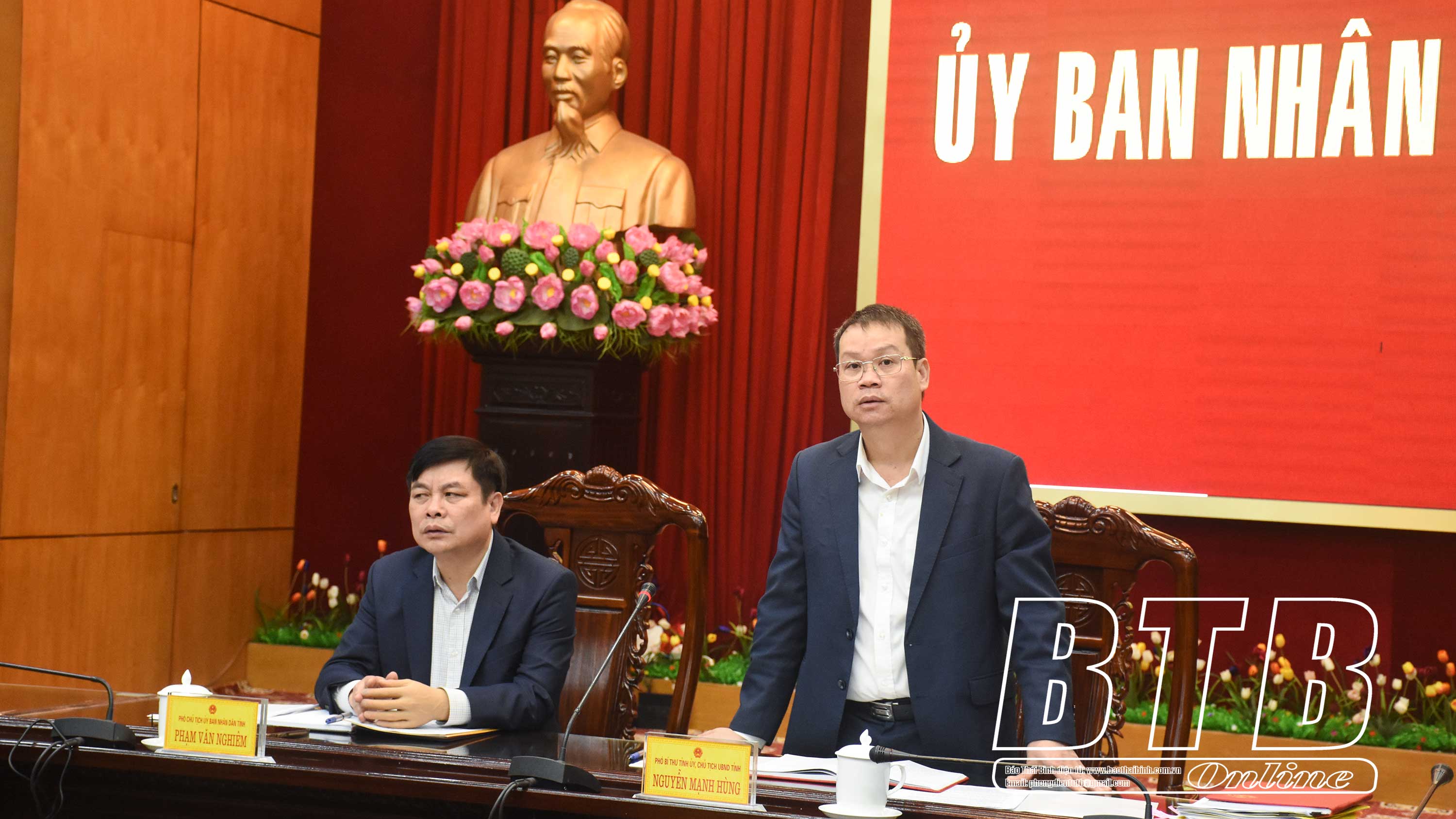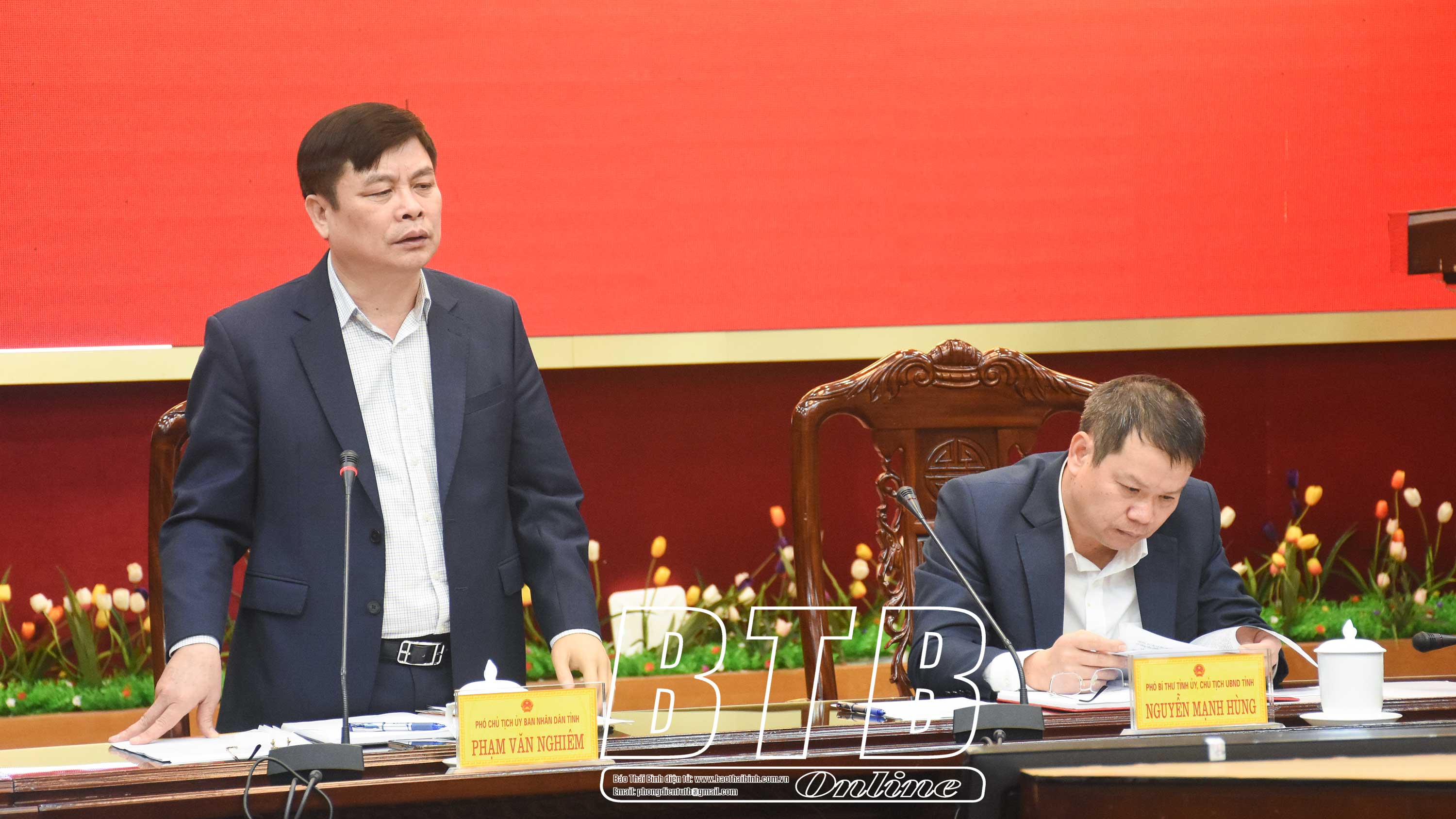 Sáng ngày 18/2, đồng chí Nguyễn Mạnh Hùng, Phó Bí thư Tỉnh ủy, Chủ tịch UBND tỉnh chủ trì cuộc họp của UBND tỉnh nghe Sở Lao động - Thương binh và Xã hội báo cáo thực trạng công tác đào tạo lao động có kỹ năng nghề trên địa bàn tỉnh; phương hướng, nhiệm vụ, giải pháp thời gian tới. Dự họp có các đồng chí: Vũ Kim Cứ, Ủy viên Ban Thường vụ Tỉnh ủy, Trưởng ban Quản lý Khu kinh tế và các khu công nghiệp tỉnh; Phạm Văn Nghiêm, Tỉnh ủy viên, Phó Chủ tịch UBND tỉnh.