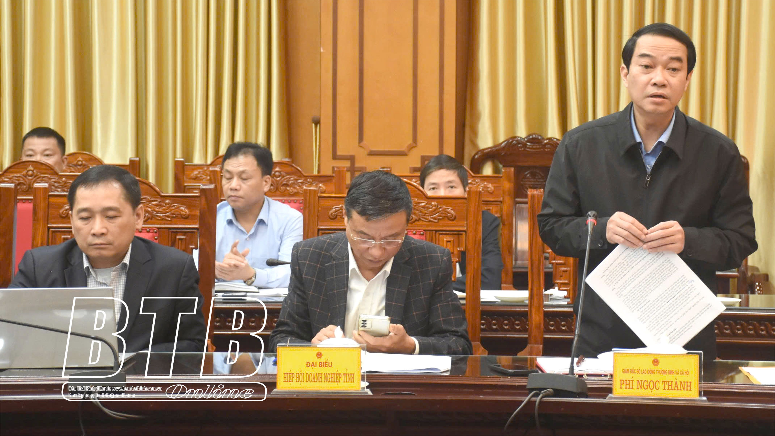 Lãnh đạo Sở Lao động - Thương binh và Xã hội phát biểu tại cuộc họp.