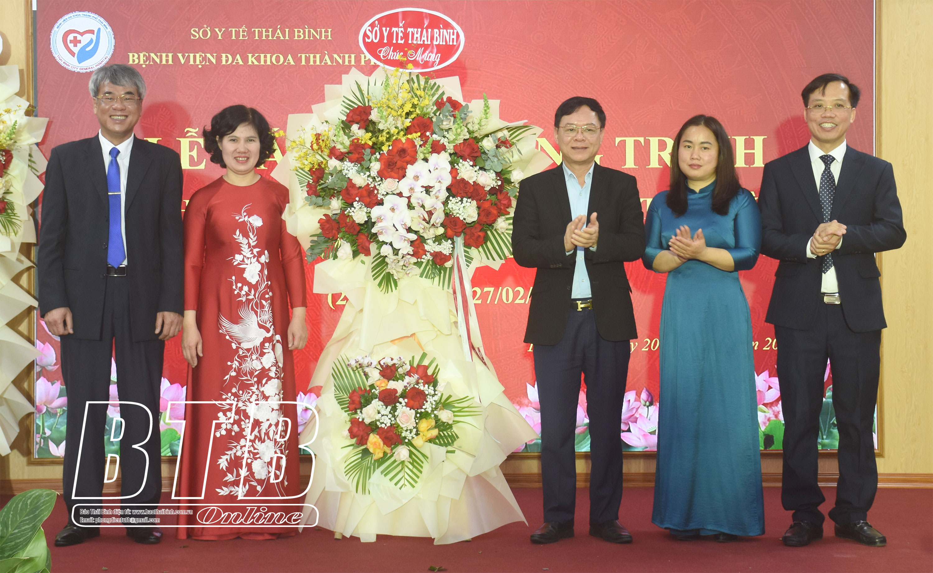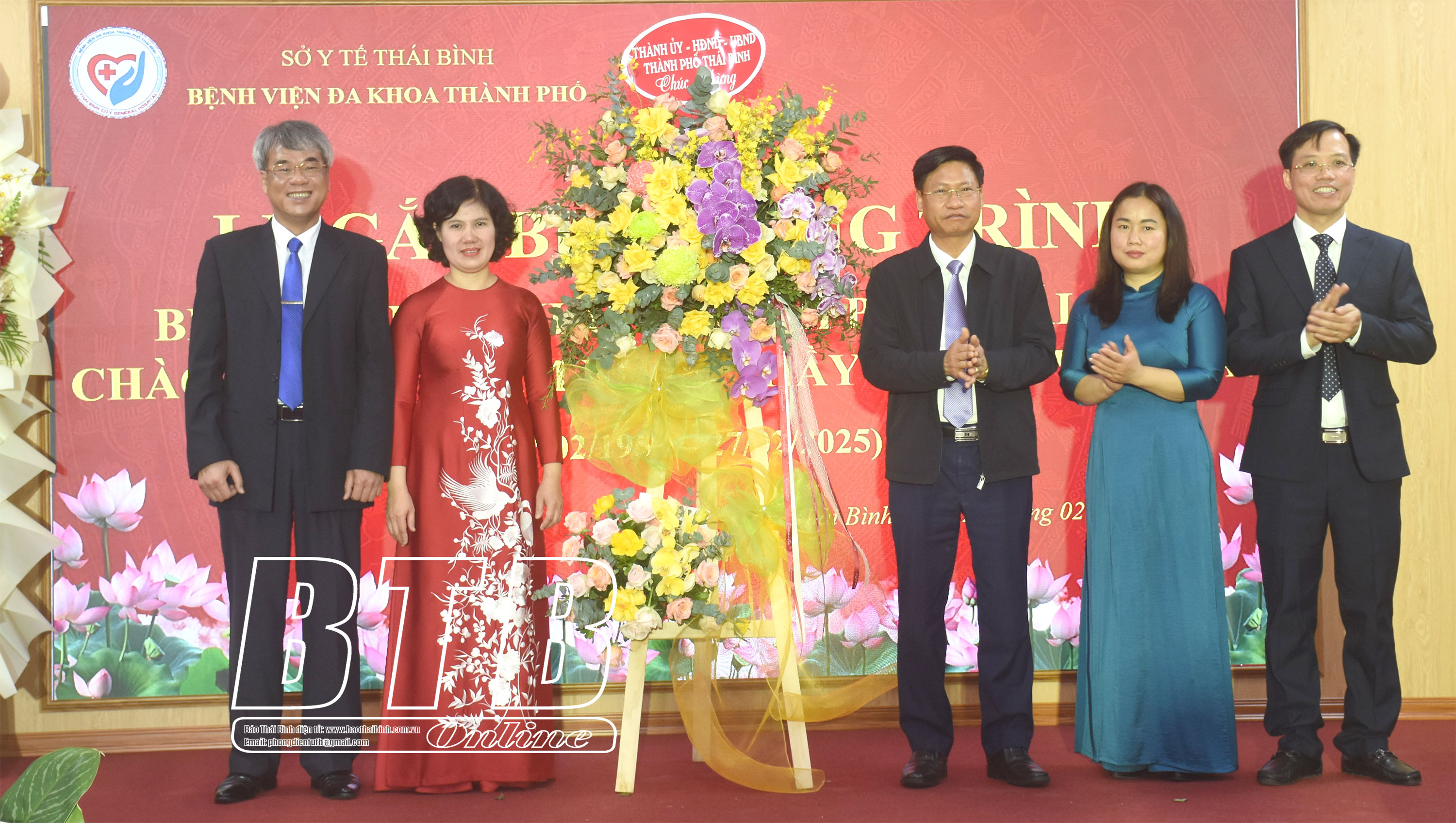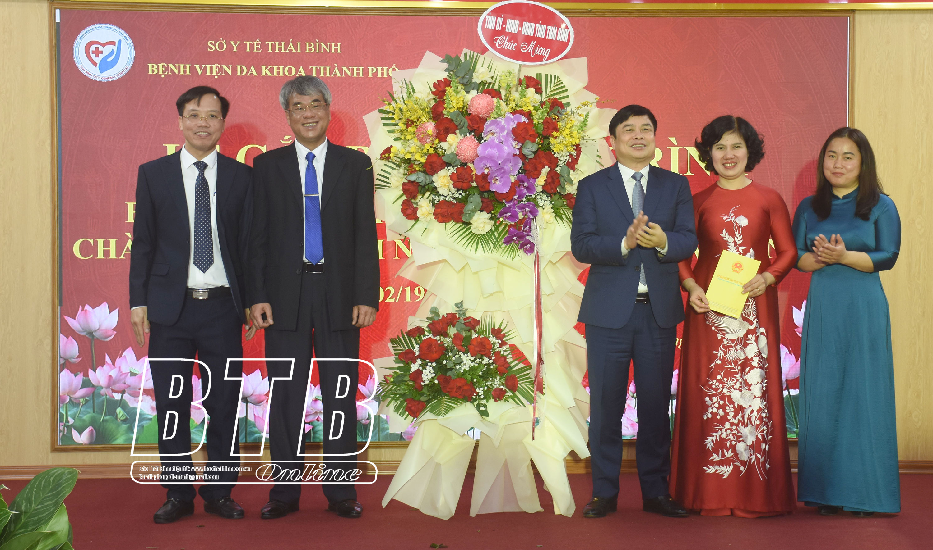Lãnh đạo thành phố Thái Bình tặng hoa chúc mừng.