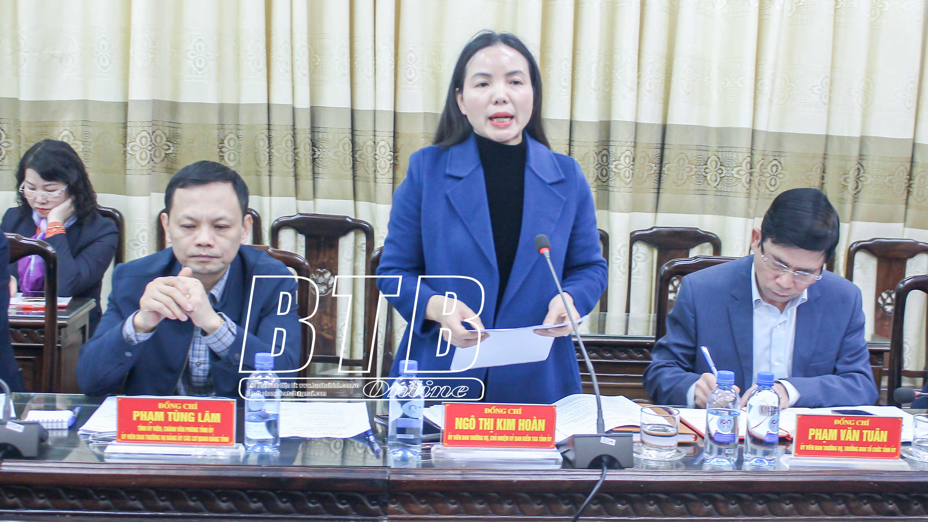 Đồng chí Ngô Thị Kim Hoàn, Ủy viên Ban Thường vụ, Chủ nhiệm Ủy ban Kiểm tra Tỉnh ủy phát biểu tại hội nghị.