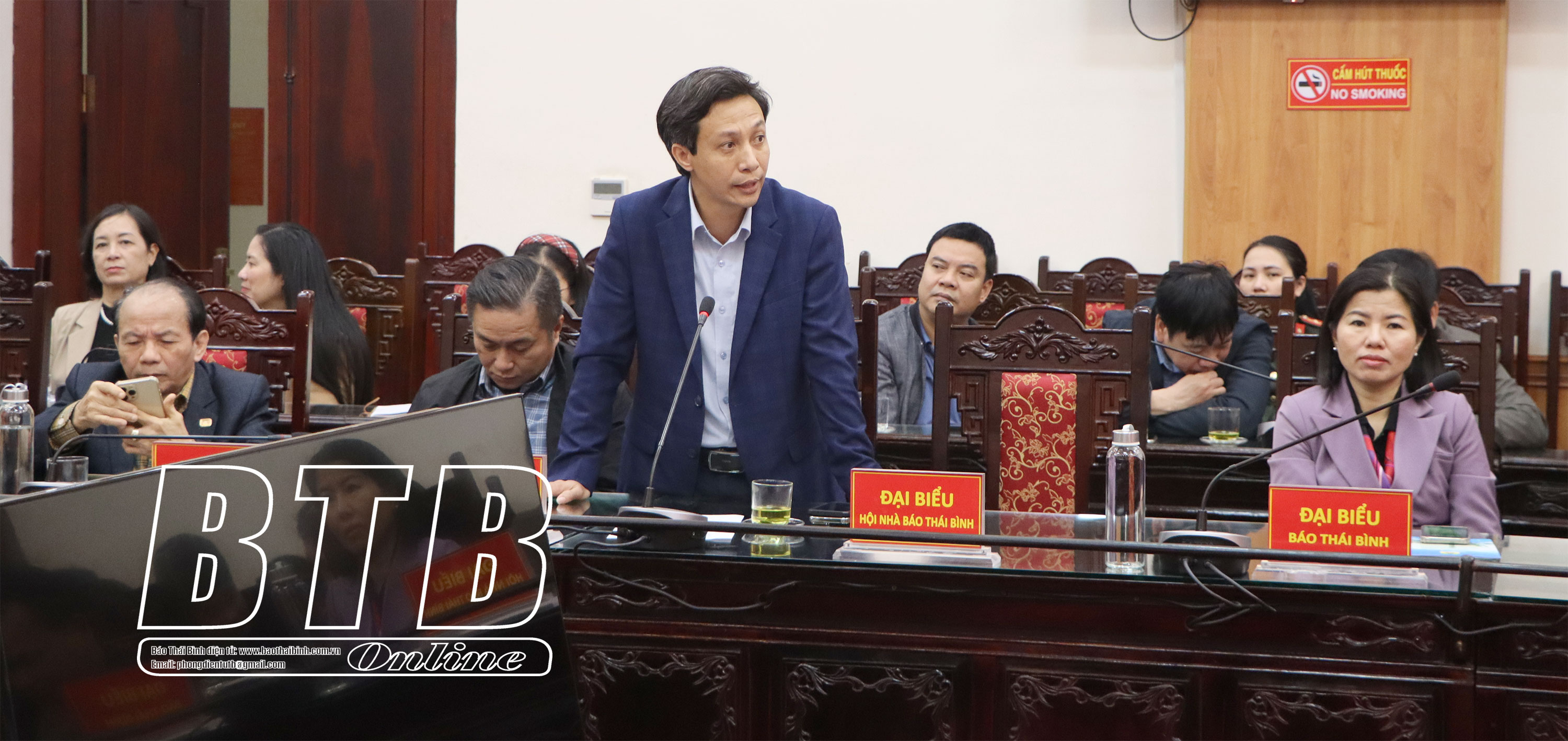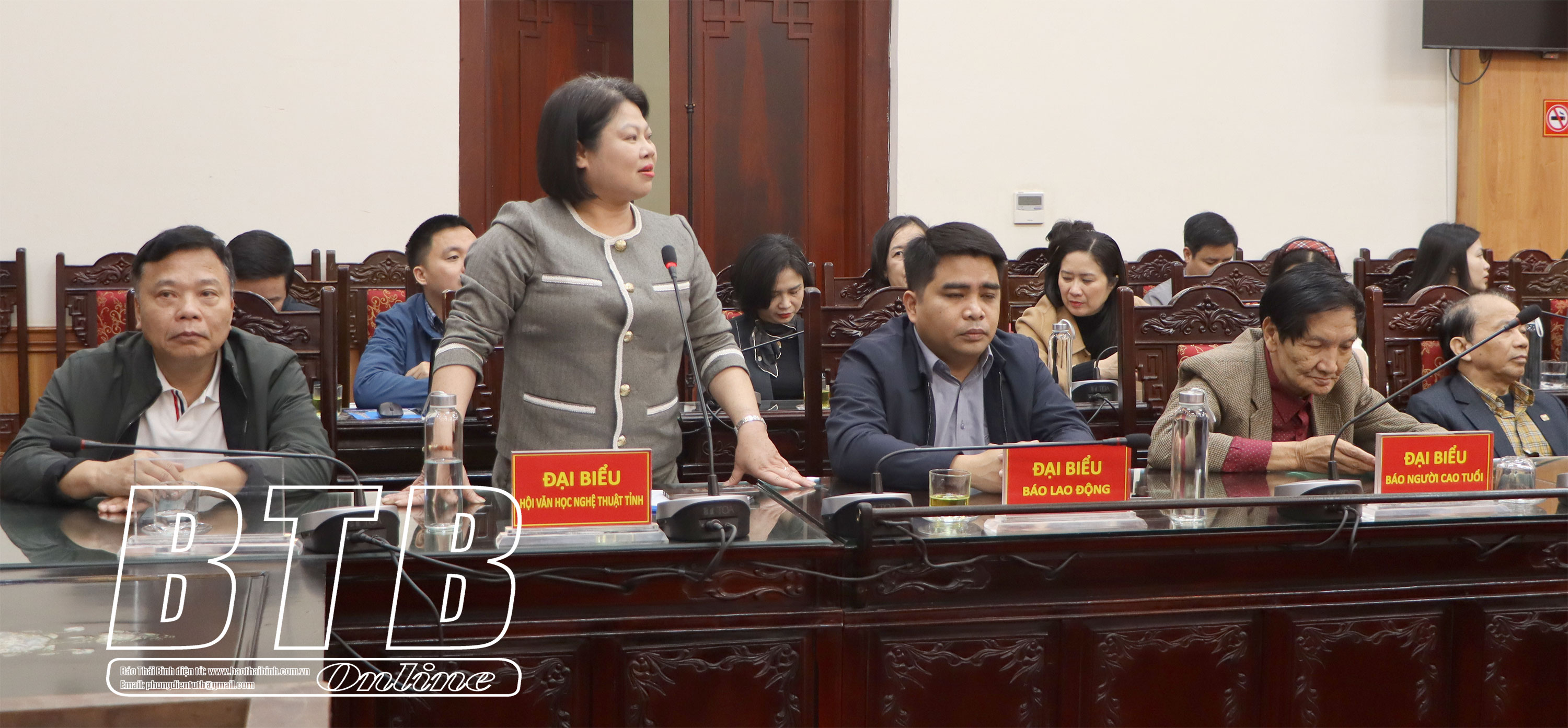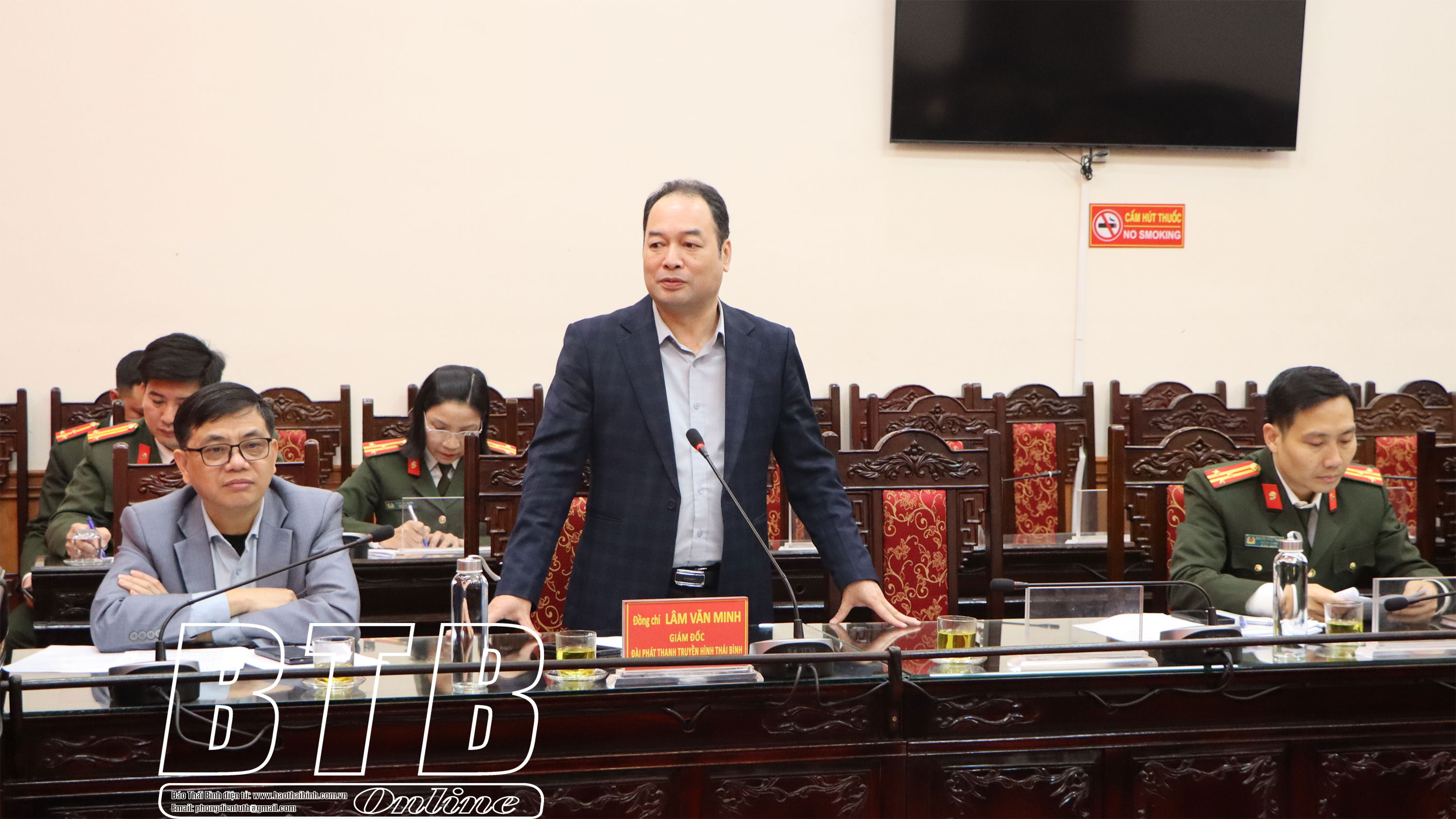 Lãnh đạo Đài Phát thanh và Truyền hình Thái Bình phát biểu tại buổi gặp mặt.