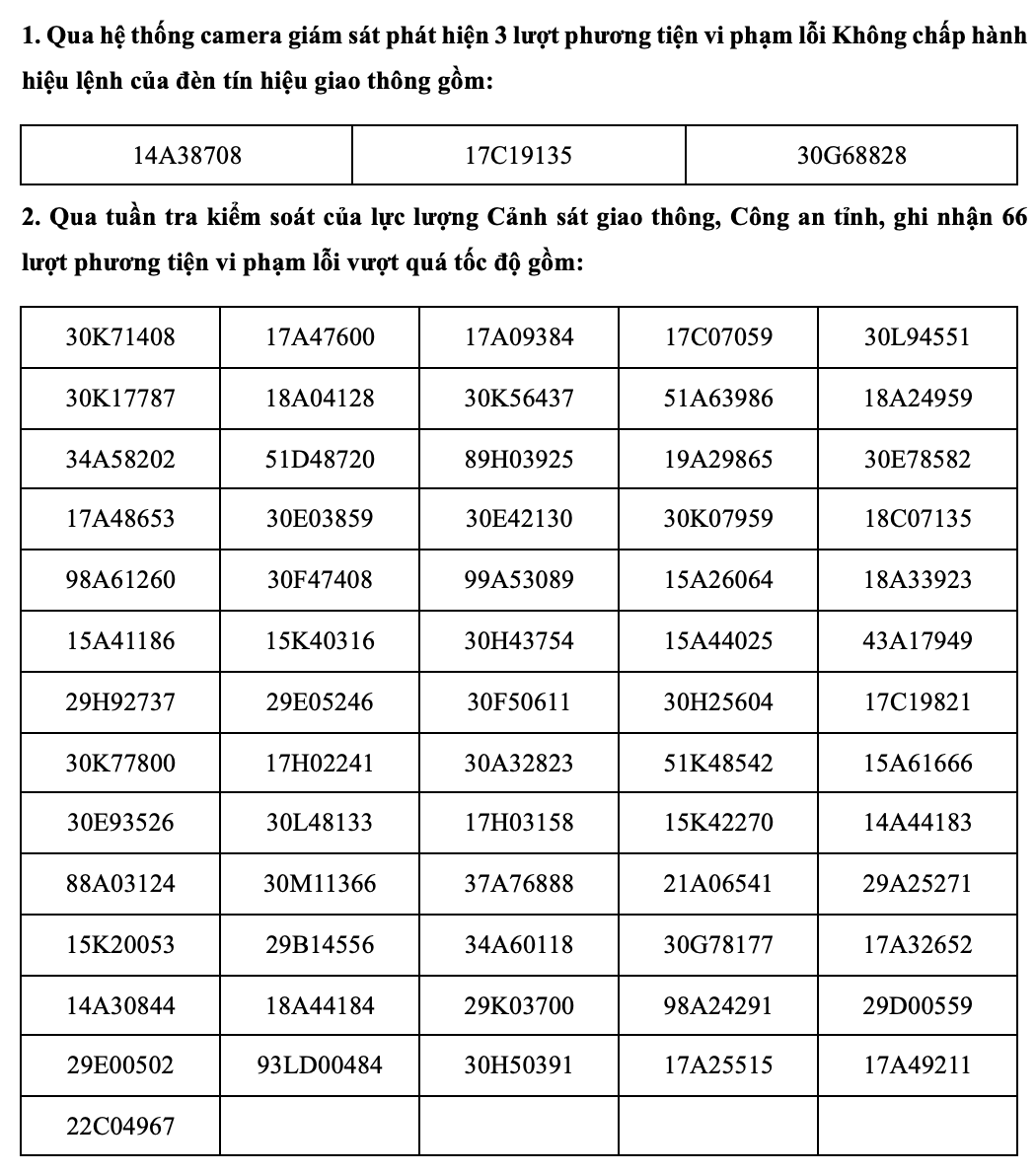 Theo báo cáo của Phòng Cảnh sát giao thông, Công an tỉnh, từ ngày 12 - 18/2/2025, lực lượng cảnh sát giao thông đã ghi nhận 69 trường hợp phương tiện vi phạm Luật Giao thông đường bộ bị xử lý phạt nguội.