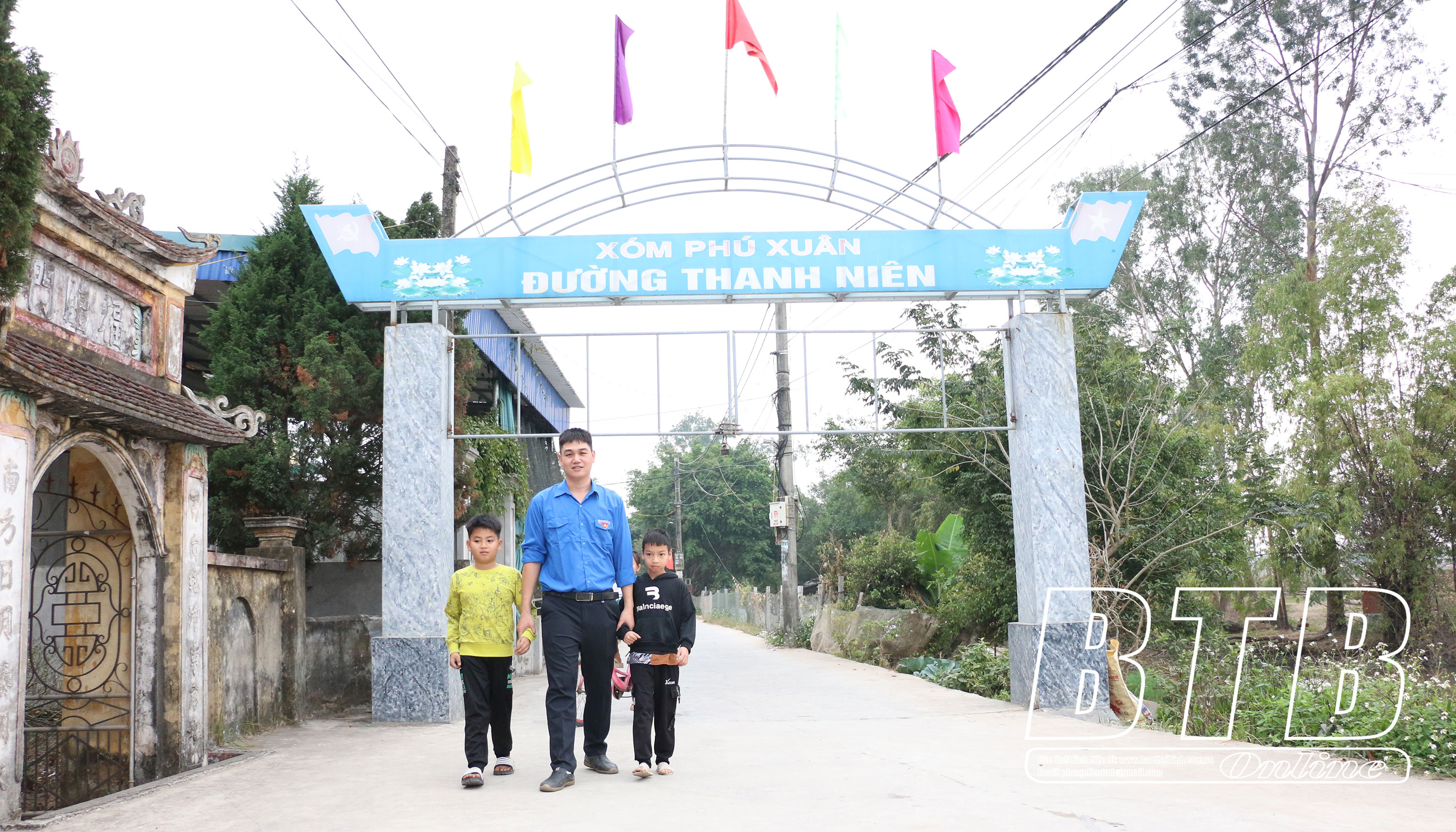 Anh Ngô Văn Đức, Bí thư Đoàn Thanh niên xã Xuân Hòa (Vũ Thư) được các em nhỏ và người dân yêu mến.