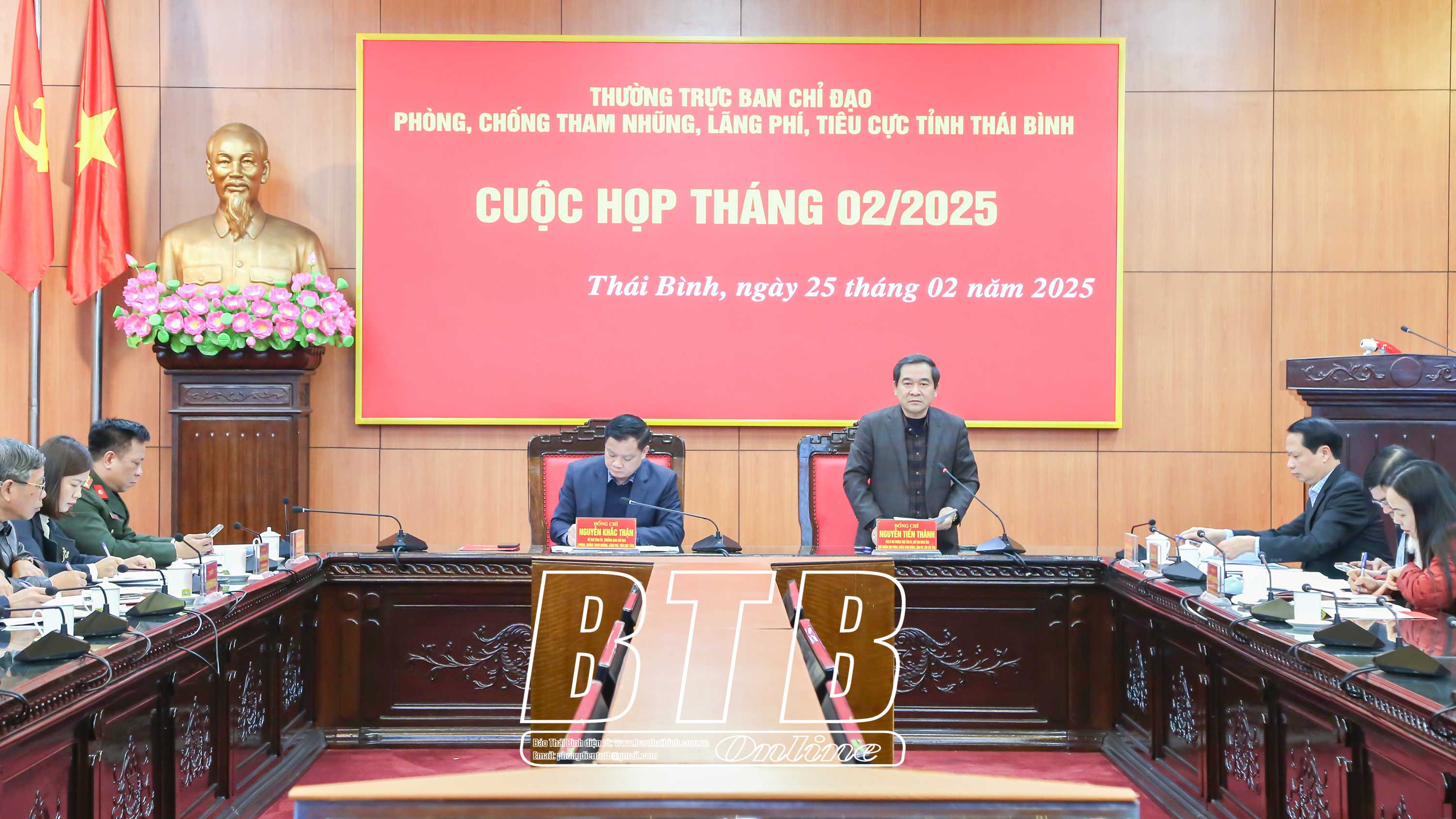 Sáng ngày 25/2, Thường trực Ban Chỉ đạo tỉnh về công tác phòng, chống tham nhũng, lãng phí, tiêu cực tổ chức cuộc họp tháng 2/2025 nghe và cho ý kiến về tình hình, kết quả hoạt động của Ban Chỉ đạo tỉnh từ sau phiên họp thứ 11 đến nay.