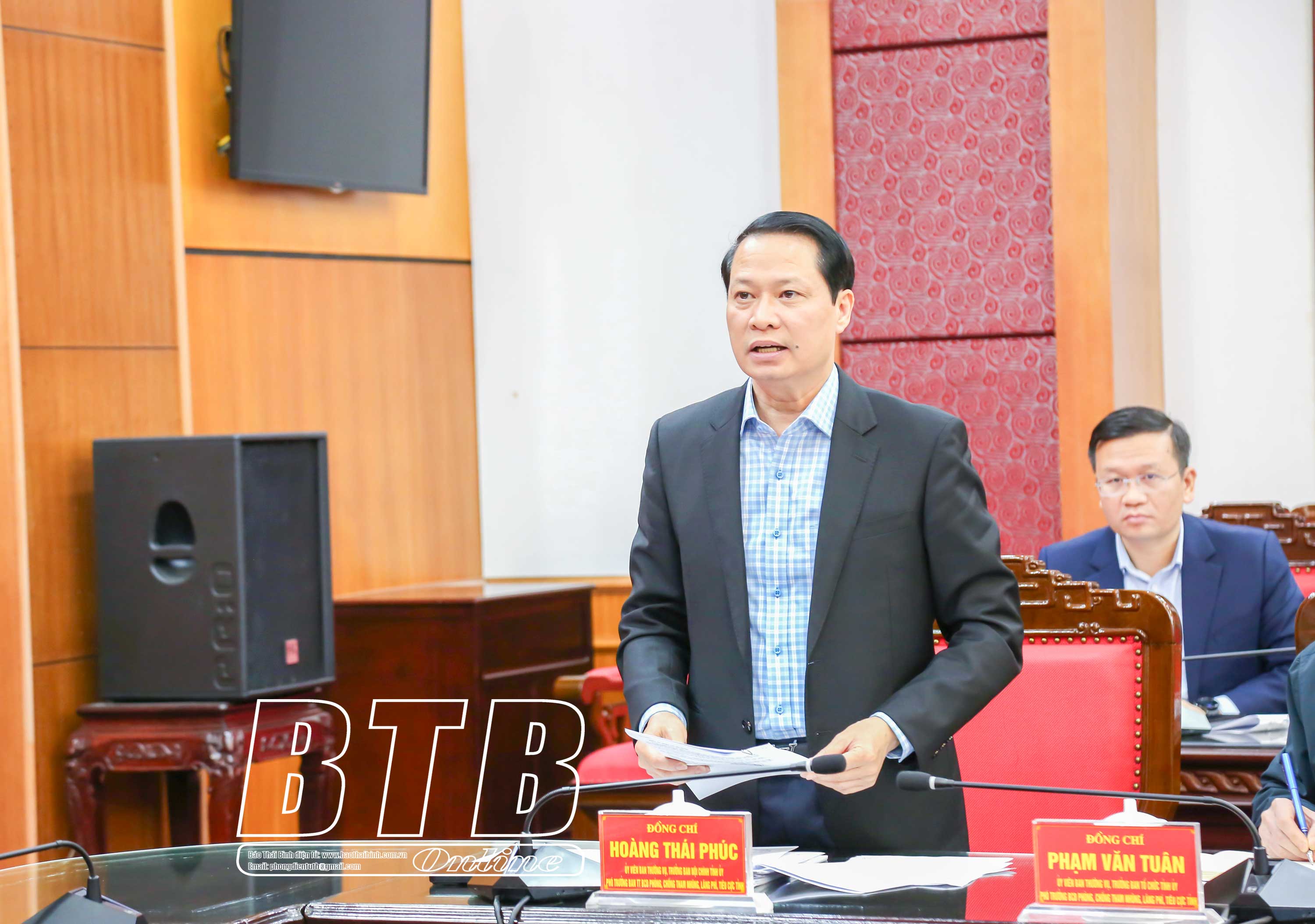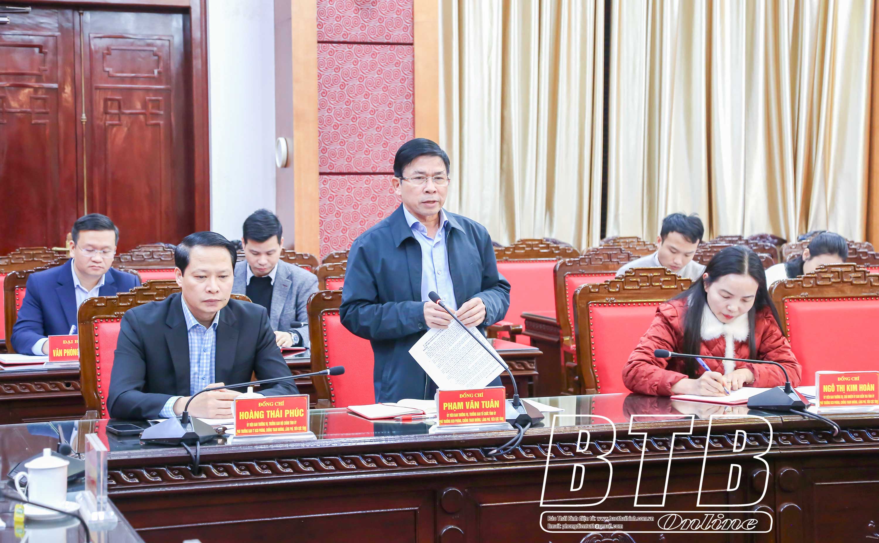 Dự cuộc họp có các đồng chí: Hoàng Thái Phúc, Ủy viên Ban Thường vụ, Trưởng ban Nội chính Tỉnh ủy, Phó Trưởng ban thường trực Ban Chỉ đạo tỉnh và các đồng chí Ủy viên Ban Thường vụ Tỉnh ủy.