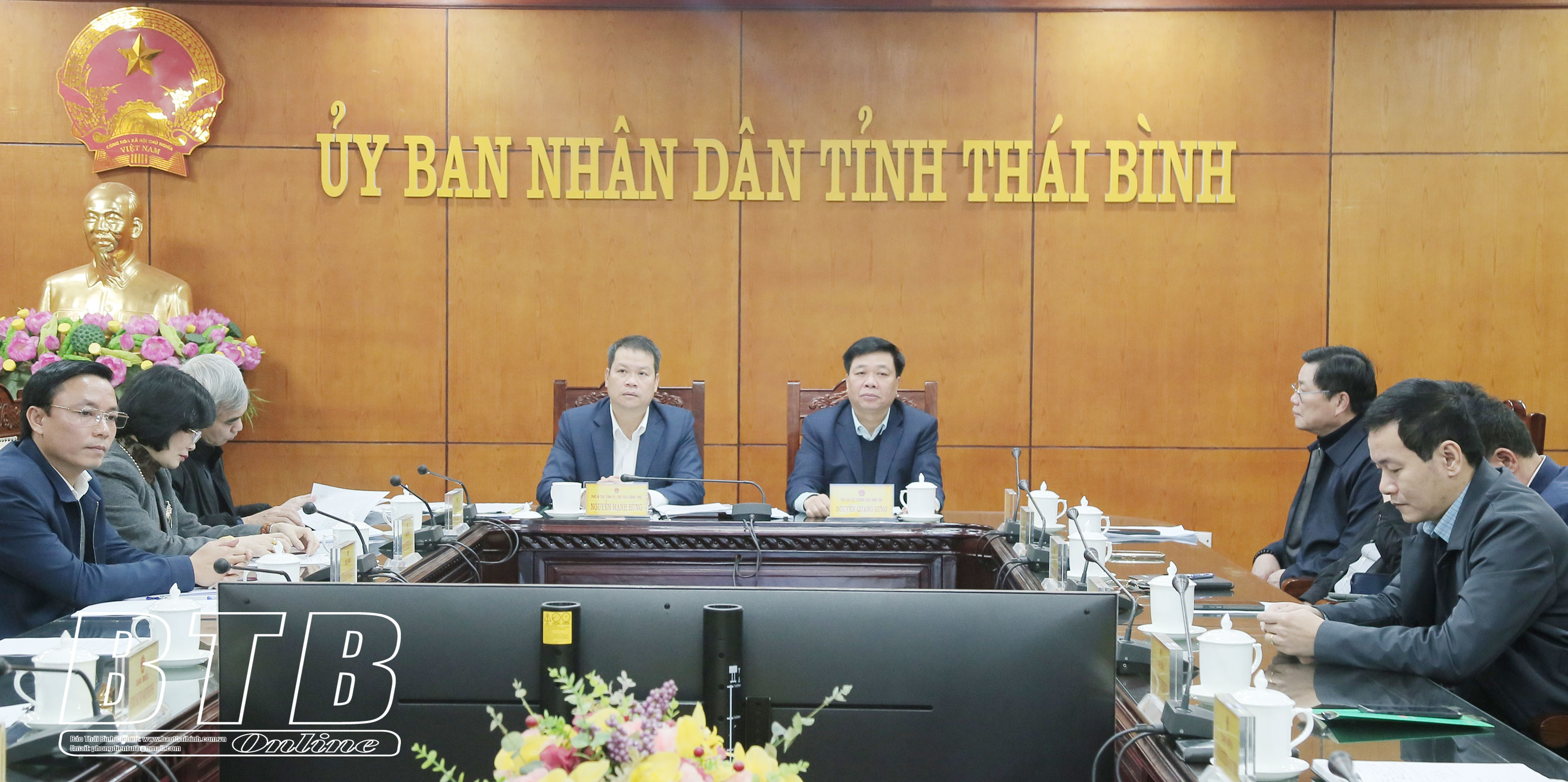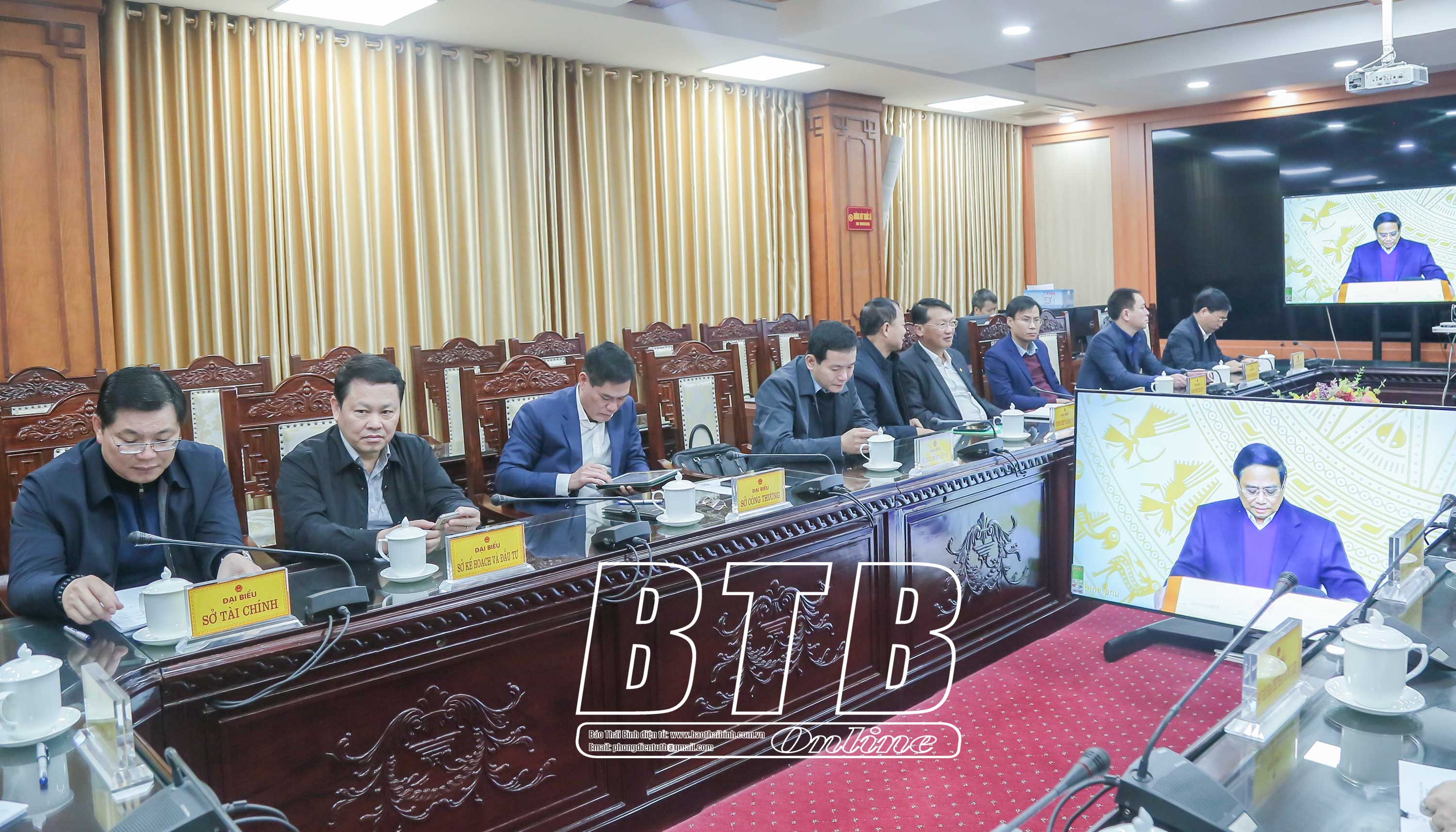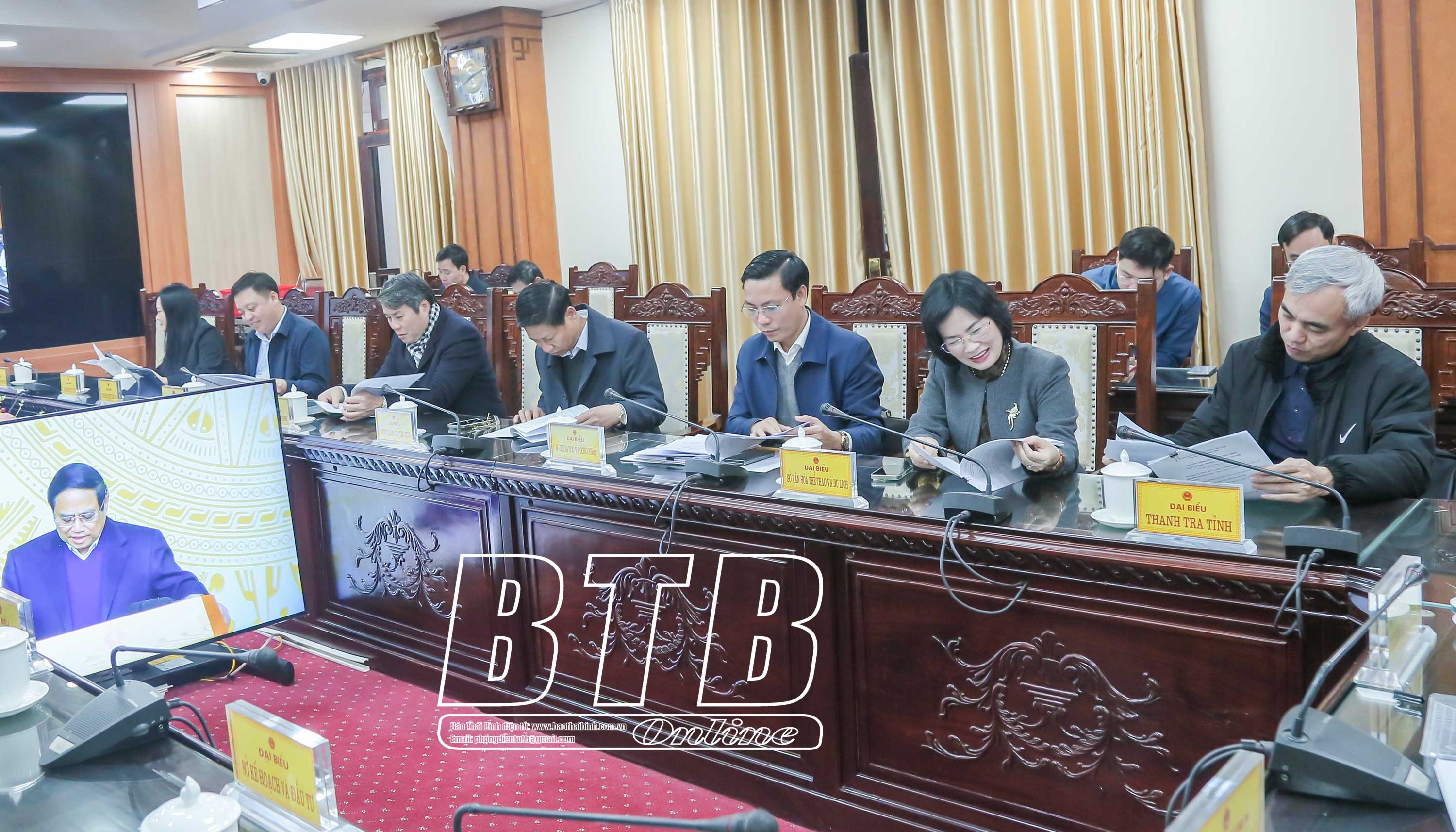 Dự phiên họp tại điểm cầu Thái Bình có các đồng chí: Nguyễn Mạnh Hùng, Phó Bí thư Tỉnh ủy, Chủ tịch UBND tỉnh; Nguyễn Quang Hưng, Ủy viên Ban Thường vụ Tỉnh ủy, Phó Chủ tịch thường trực UBND tỉnh; lãnh đạo một số sở, ngành và các huyện, thành phố.