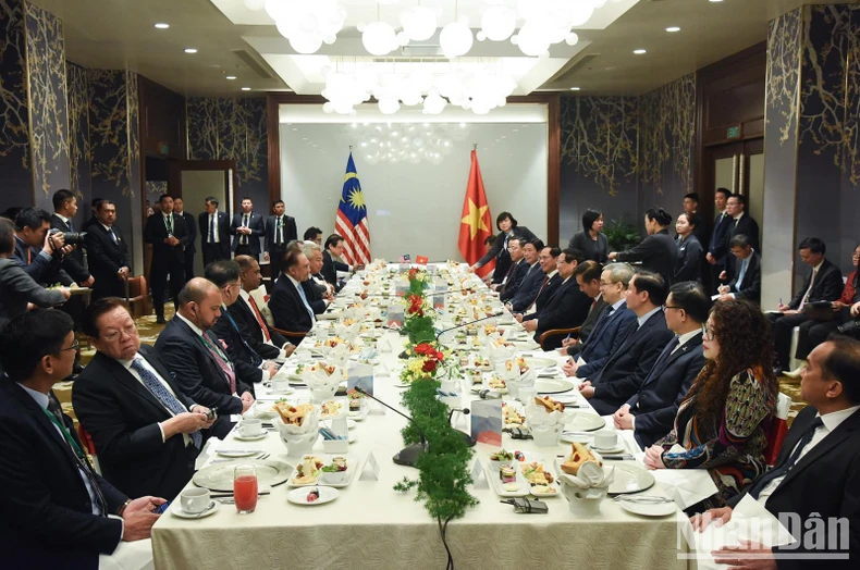 Hai Thủ tướng bày tỏ hài lòng về sự phát triển của quan hệ song phương thời gian qua, đặc biệt kể từ sau chuyến thăm chính thức Việt Nam của Thủ tướng Anwar Ibrahim (tháng 7/2023) và chuyến thăm chính thức Malaysia của Tổng Bí thư Tô Lâm (11/2024).