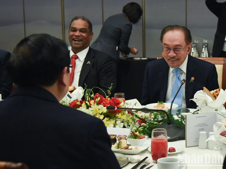 Cuộc ăn sáng làm việc giữa Thủ tướng Chính phủ Phạm Minh Chính và Thủ tướng Malaysia Anwar Ibrahim. (Ảnh: TRẦN HẢI).