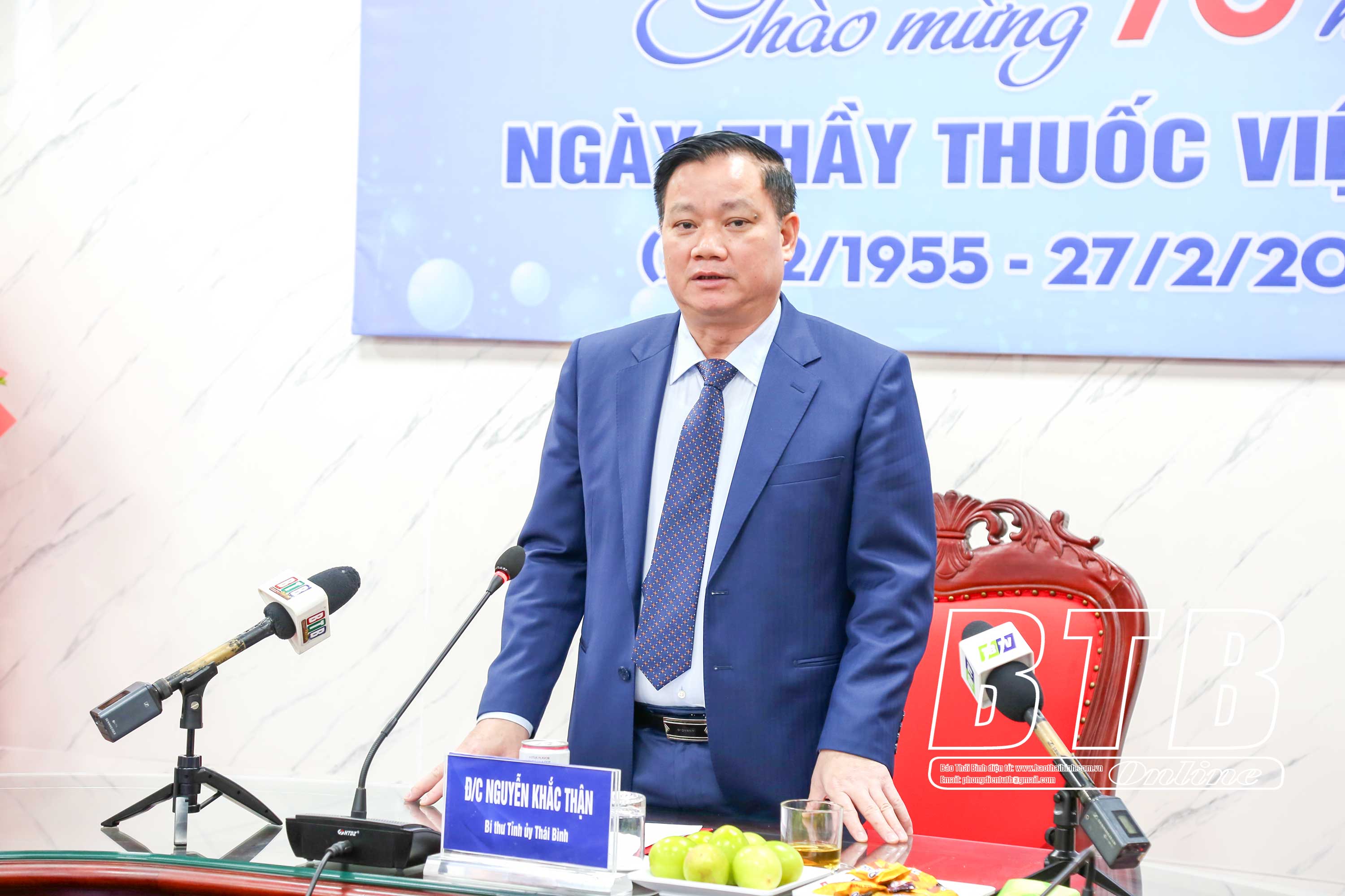 Đến thăm, chúc mừng Trường Đại học Y Dược Thái Bình, đồng chí Bí thư Tỉnh ủy đã gửi những lời chúc mừng tốt đẹp nhất đến tập thể cán bộ, thầy thuốc, nhân viên y tế của Trường nhân ngày Thầy thuốc Việt Nam.