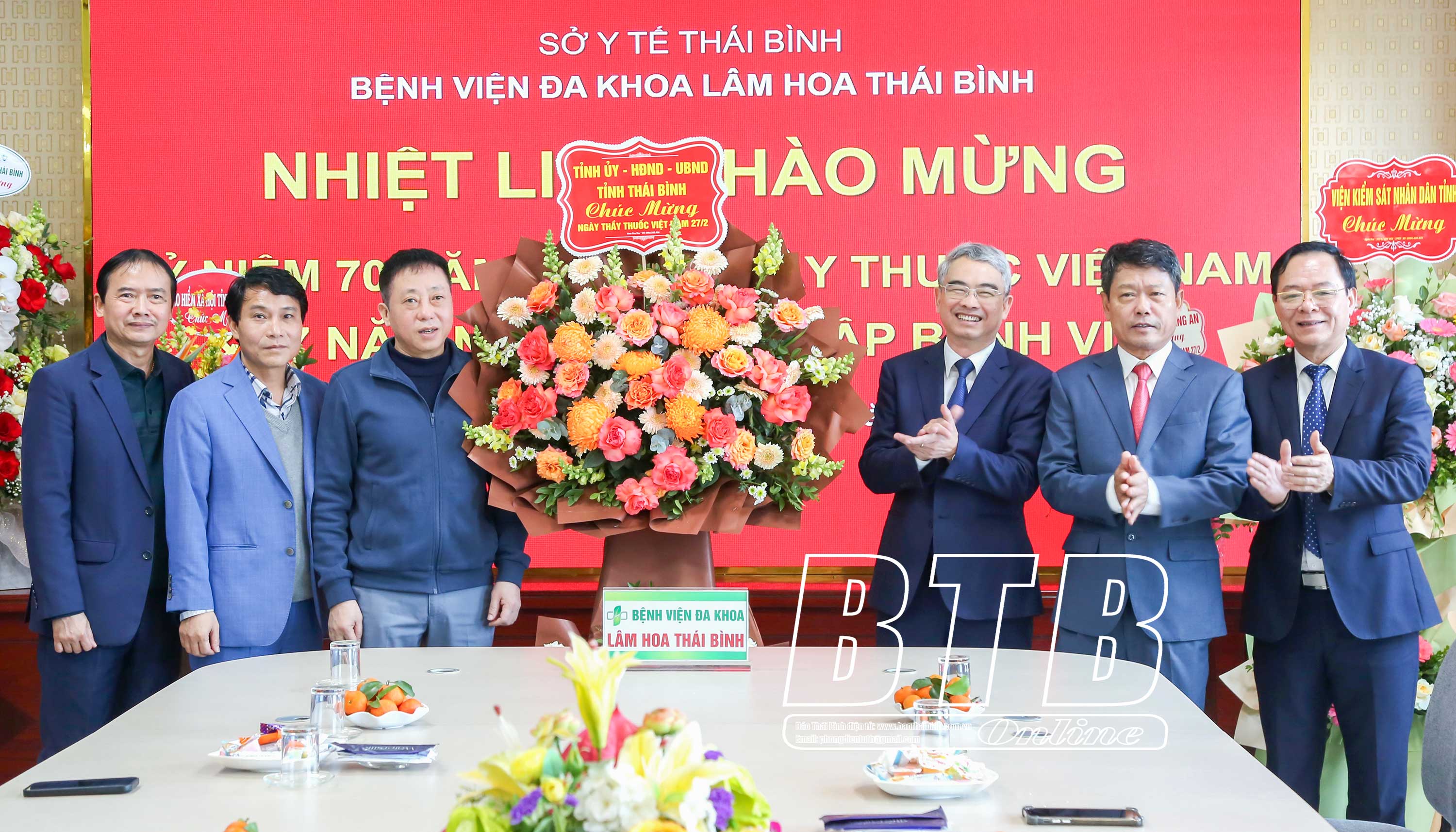 Cũng trong sáng ngày 27/2, các đồng chí: Phạm Đồng Thụy, Ủy viên Ban Thường vụ, Trưởng ban Tuyên giáo và Dân vận Tỉnh ủy; Hoàng Văn Thành, Ủy viên Ban Thường vụ Tỉnh ủy, Bí thư Thành ủy, Chủ tịch HĐND thành phố và lãnh đạo Sở Y tế đã đến thăm, chúc mừng Bệnh viện Đa khoa thành phố, Bệnh viện Đa khoa Lâm Hoa Thái Bình và Trạm Y tế phường Kỳ Bá (thành phố Thái Bình).