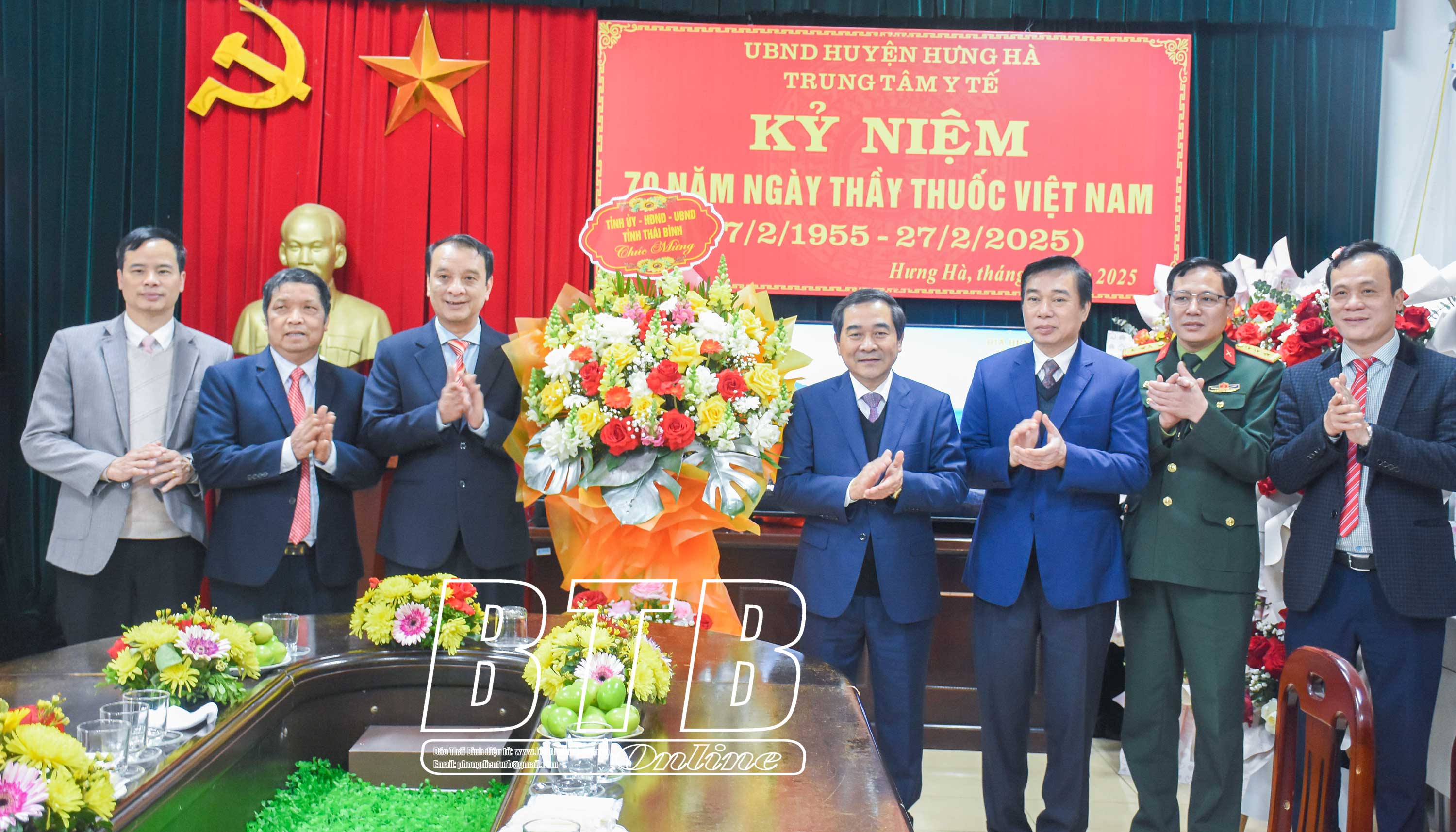 Lãnh đạo huyện Hưng Hà chúc mừng Bệnh viện Đa khoa Hưng Hà nhân ngày Thầy thuốc Việt Nam.