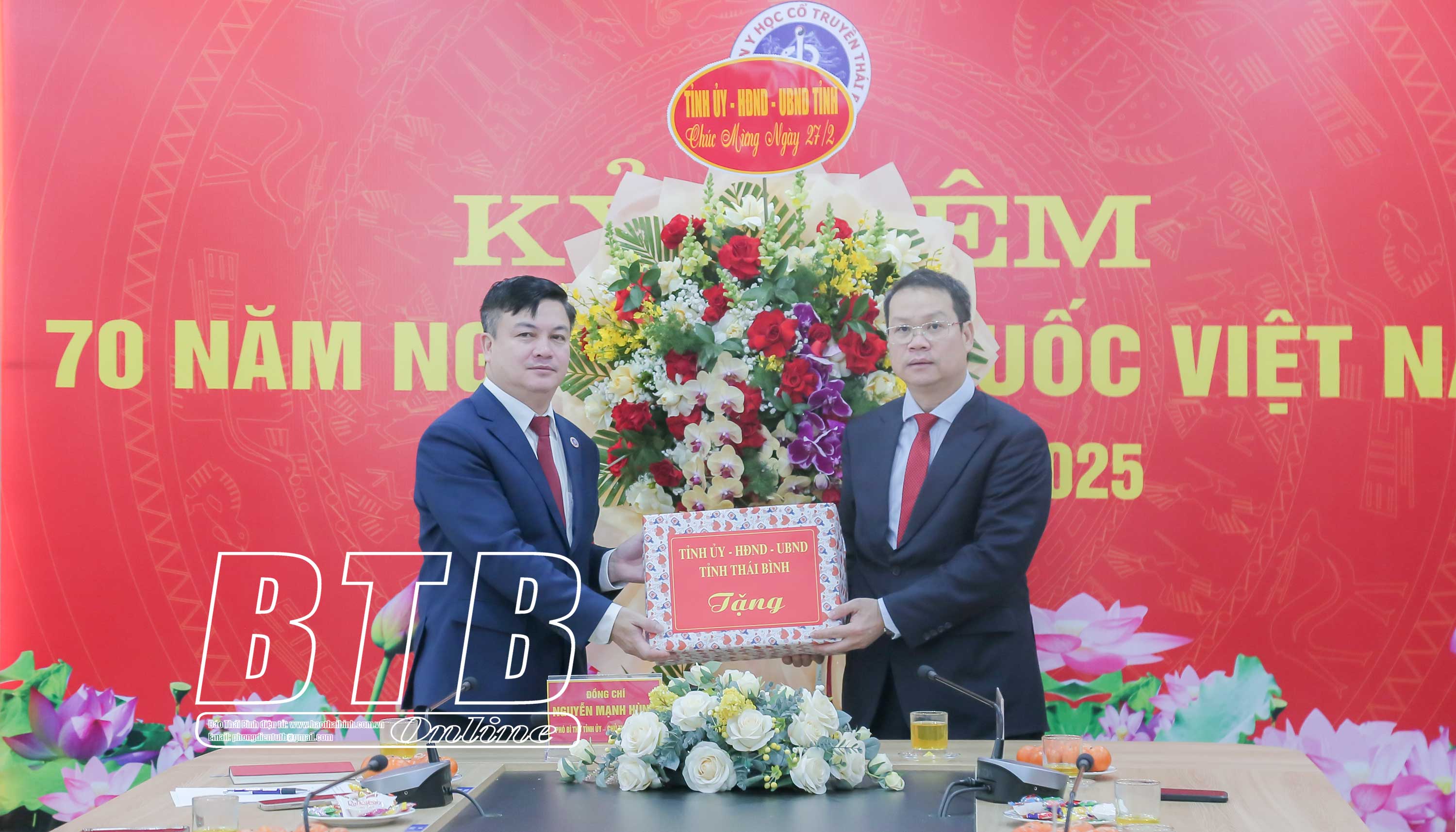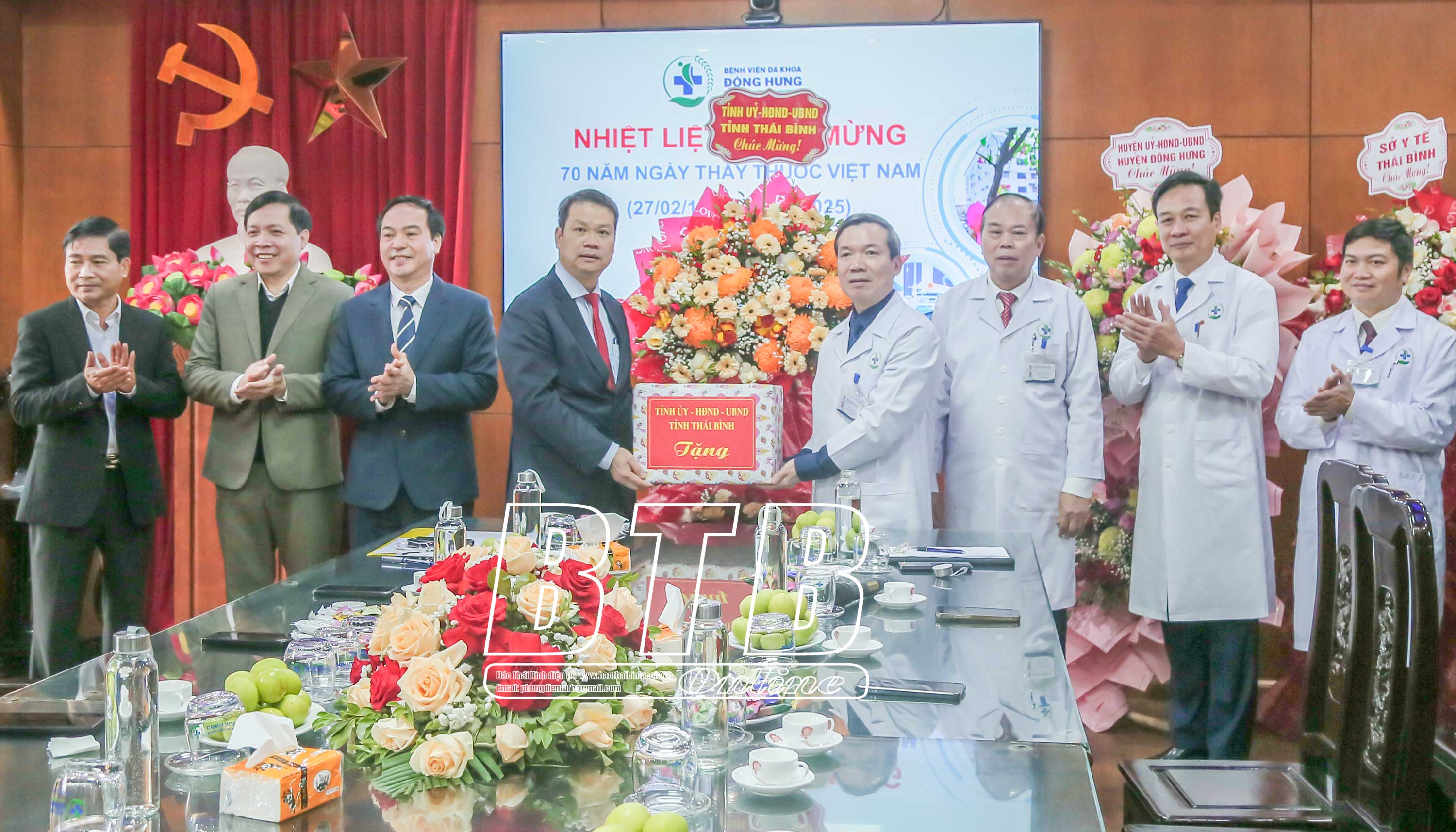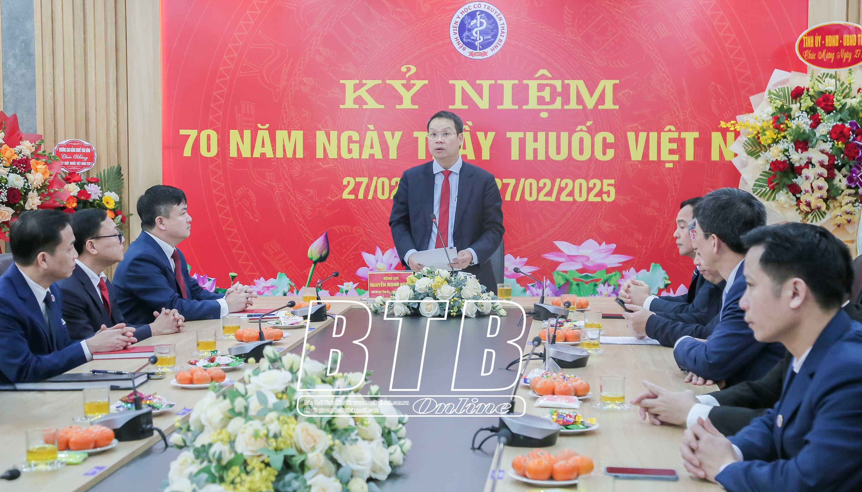 Nhân kỷ niệm 70 năm ngày Thầy thuốc Việt Nam (27/2/1955-27/2/2025), sáng ngày 27/2, đồng chí Nguyễn Mạnh Hùng, Phó Bí thư Tỉnh ủy, Chủ tịch UBND tỉnh đã đến thăm, chúc mừng tập thể thầy thuốc, cán bộ y tế Bệnh viện Y học Cổ truyền Thái Bình; Bệnh viện Đa khoa huyện Đông Hưng; Trung tâm Y tế huyện Đông Hưng và Trạm Y tế Phong Châu, xã Phong Dương Tiến (Đông Hưng). Cùng đi có đồng chí Vũ Ngọc Trì, Tỉnh ủy viên, Phó Chủ tịch HĐND tỉnh và lãnh đạo Sở Y tế.