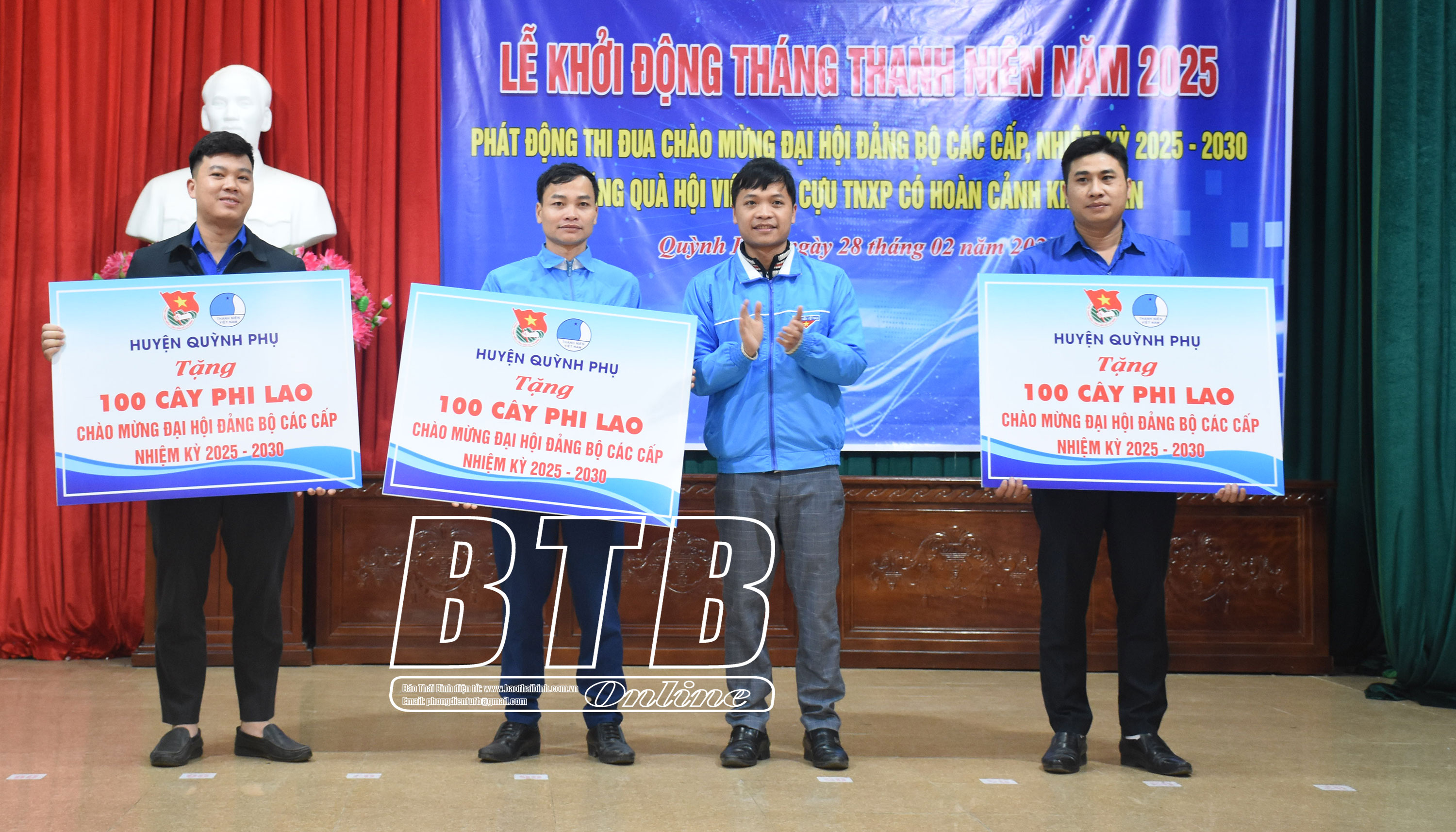 Tại buổi lễ, Huyện đoàn Quỳnh Phụ đã trao biển công trình thắp sáng đường quê cho Đoàn Thanh niên xã Quỳnh Khê; trao tặng bò sinh kế cho các hộ dân có hoàn cảnh khó khăn tại các xã: An Vinh, An Dục, Quỳnh Nguyên; trao tặng 300 cây xanh cho đoàn thanh niên tại một số xã trong huyện và tặng quà cho hội viên cựu thanh niên xung phong xã Quỳnh Khê.