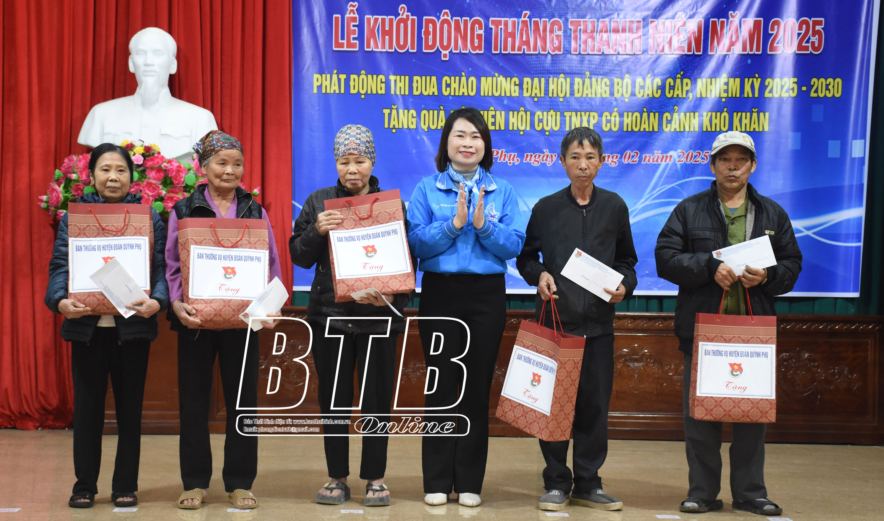 Sáng ngày 28/2, tại xã Quỳnh Khê, Đoàn Thanh niên, Hội Liên hiệp Thanh niên huyện Quỳnh Phụ tổ chức lễ khởi động tháng thanh niên năm 2025; phát động thi đua chào mừng đại hội đảng bộ các cấp nhiệm kỳ 2025-2030 và tặng quà hội viên cựu thanh niên xung phong có hoàn cảnh khó khăn.