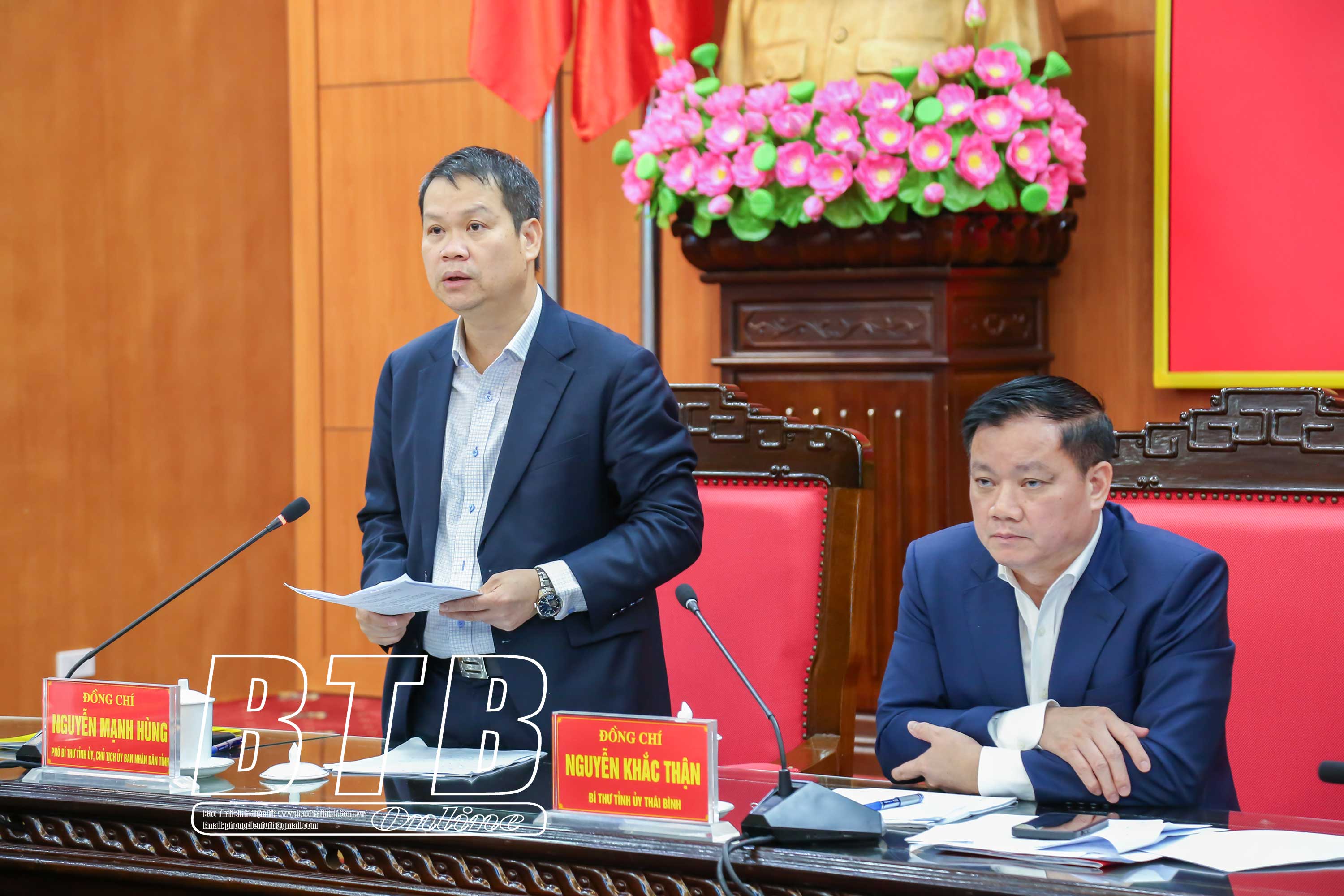 Các đồng chí: Nguyễn Khắc Thận, Bí thư Tỉnh ủy, Trưởng BCĐ; Nguyễn Tiến Thành, Phó Bí thư thường trực Tỉnh ủy, Chủ tịch HĐND tỉnh, Phó Trưởng BCĐ; Nguyễn Mạnh Hùng, Phó Bí thư Tỉnh ủy, Chủ tịch UBND tỉnh, Phó Trưởng BCĐ chủ trì hội nghị. Các đồng chí Ủy viên Ban Thường vụ Tỉnh ủy, lãnh đạo HĐND, UBND tỉnh, lãnh đạo các sở, ngành thành viên BCĐ và lãnh đạo cấp ủy, chính quyền một số huyện, thành phố dự hội nghị.