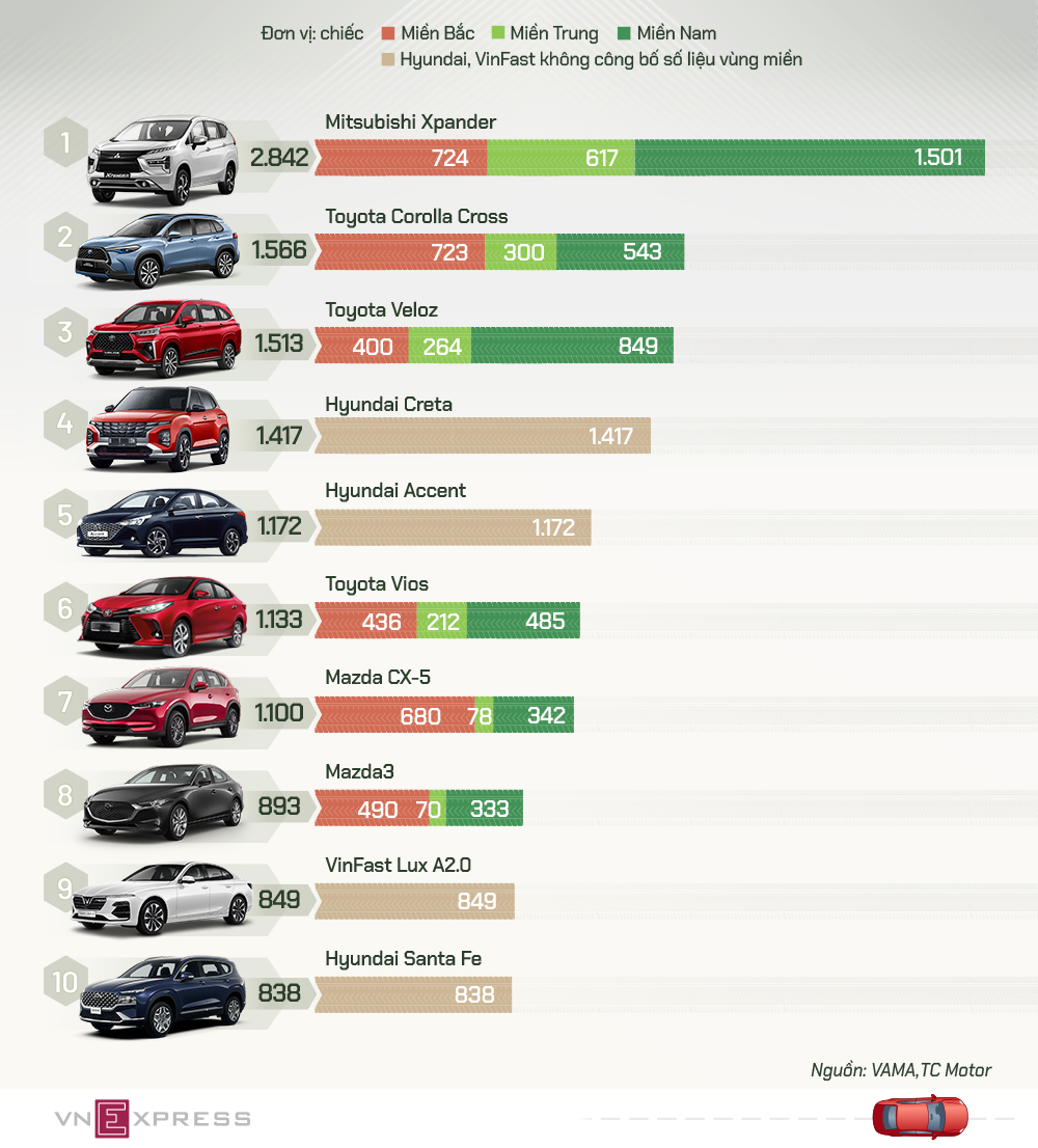 Top xe bán chạy tháng 8 - Mitsubishi Xpander lên đỉnh bảng