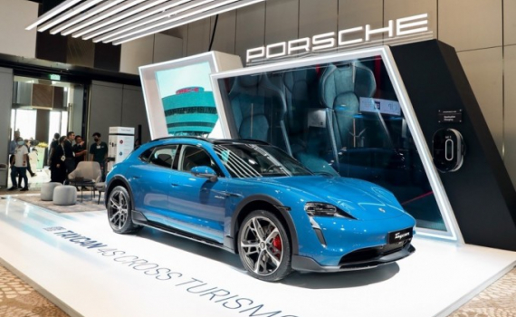Mẫu xe thể thao thuần điện Porsche Taycan 4S Cross Turismo tại Diễn đàn và Triển lãm Kinh tế xanh (GEFE) 2022, do Hiệp hội Doanh nghiệp châu Âu tại Việt Nam EuroCham tổ chức.