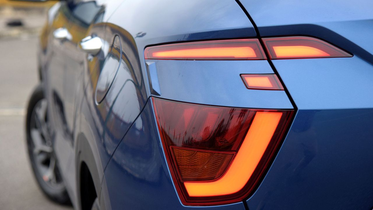 Nhìn từ phía đuôi xe, Hyundai Creta nổi bật với đèn hậu LED kiểu boomerang, góp phần tạo nên cái nhìn hài hòa với tổng thể đuôi xe. Đặc biệt, vòm bánh sau của xe hơi loe cũng góp phần nhấn mạnh vẻ ngoài khỏe khoắn hơn cho Creta.