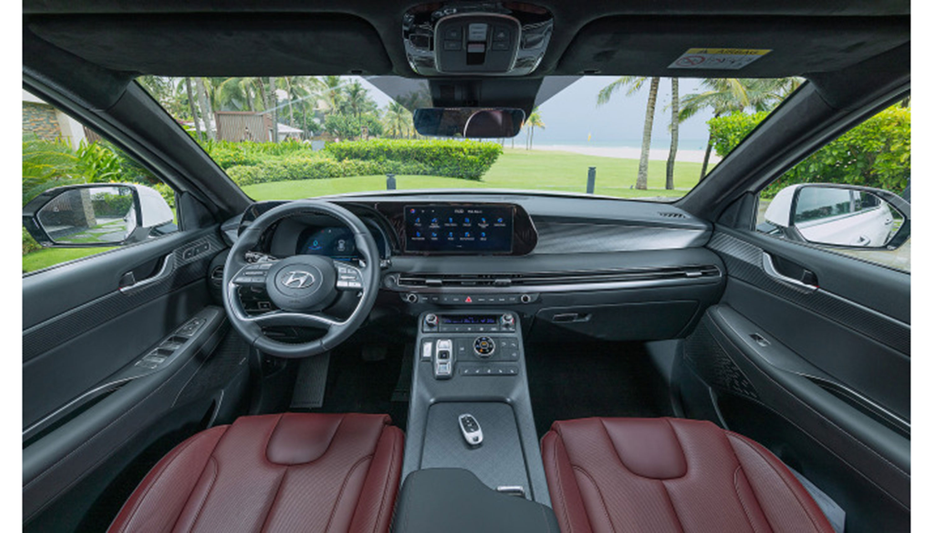 Nội thất trang bị ghế công thái học không trọng lực, bọc da Nappa. Ghế trước chỉnh điện 12 hướng. Màn hình cảm ứng 12,3 inch cho hệ thống thông tin giải trí, camera 360, hỗ trợ kết nối Apple CarPlay/Android Auto. Hệ thống âm thanh 12 loa Infinity. Cửa sổ trời toàn cảnh, trần xe bọc da lộn. Tùy chọn cấu hình 6 hoặc 7 chỗ. Bản 6 chỗ với hàng ghế thứ hai kiểu hạng thương gia, tích hợp công nghệ điều chỉnh một chạm.