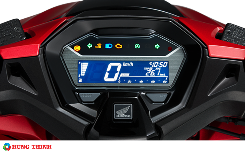 Mặt đồng hồ LCD kỹ thuật số thiết kế khoa học, dễ dàng quan sát với các thông tin được hiển thị đầy đủ như hành trình, tốc độ, mức tiêu thụ nhiên liệu, hệ thống đèn cảnh báo, thông số điện áp ắc quy…